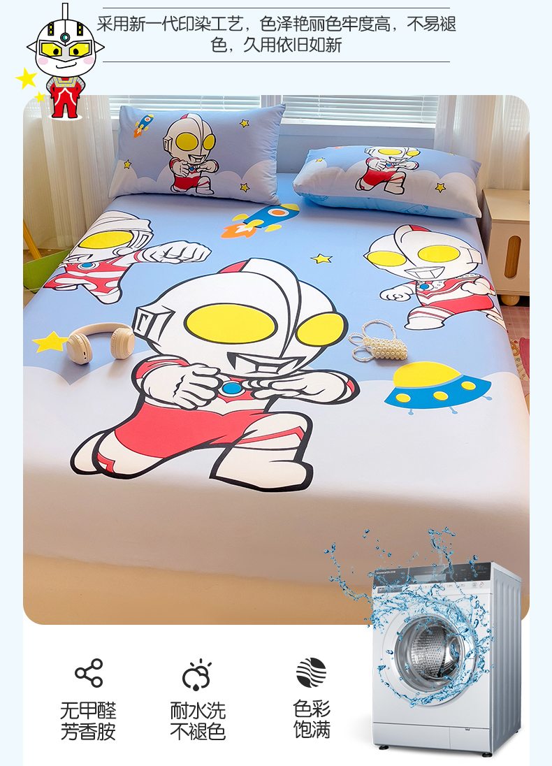 • 91家纺网 家纺一手货源 找家纺 名兮2025新款全棉纯棉大版经典奥特曼床笠【含防伪标】 奥特组合