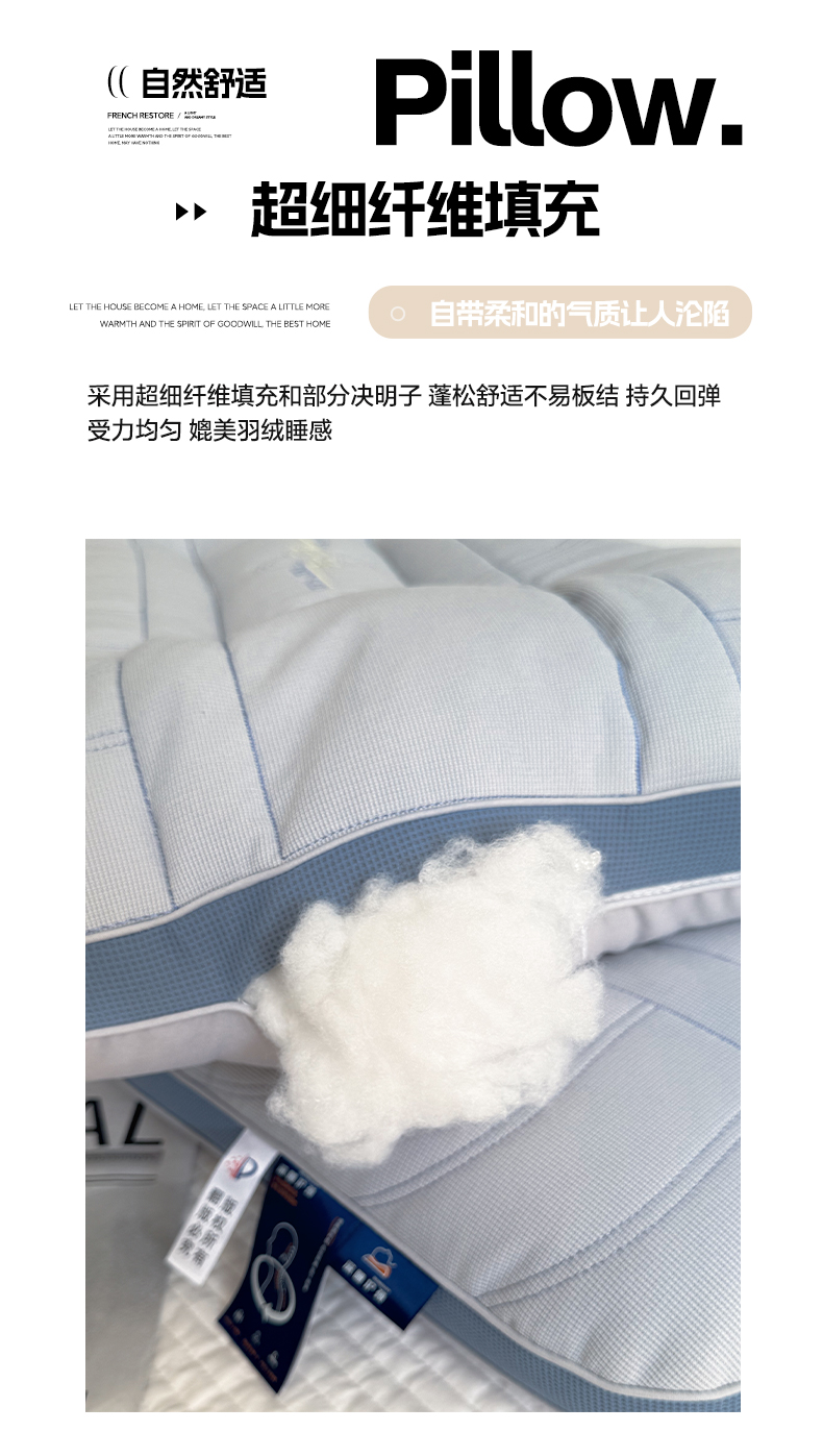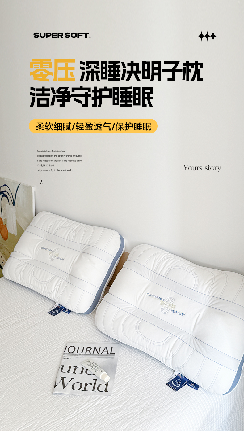 当前位置: 91家纺网 > 商品网购 > 枕头/枕芯/保健枕/颈椎枕 > 普通枕芯 > 伟邦枕芯 2025新款0压深睡决明子枕头枕芯 白色48*74cm/只