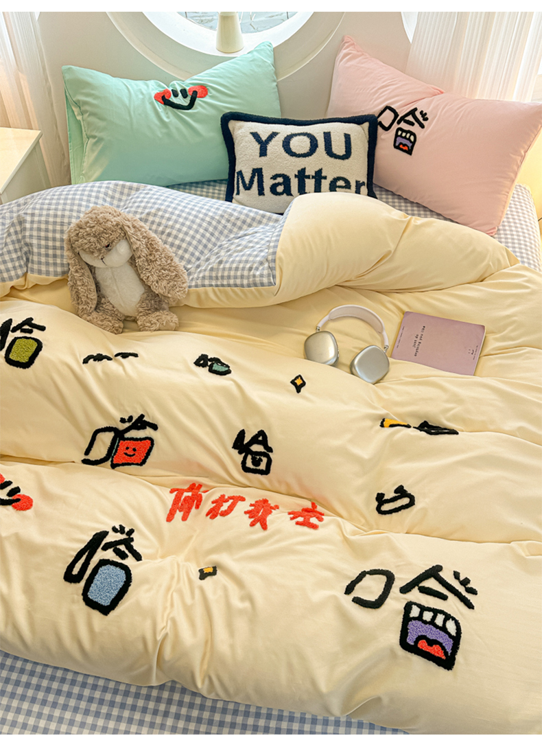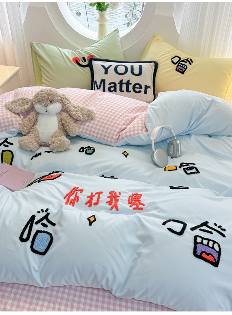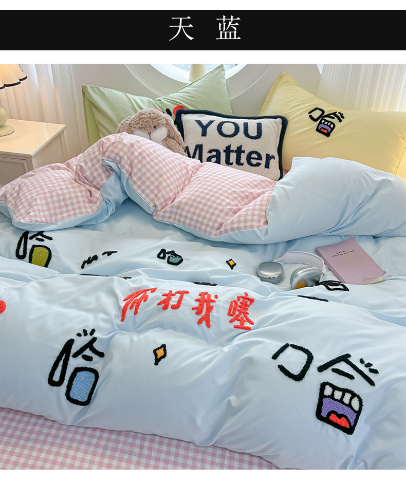当前位置: 91家纺网 > 商品网购 > 床品套件 > 四件套 > 其它四件套 > (总)子钦家纺 2025春夏新款水洗棉云朵棉毛巾绣混搭儿童调皮系列床单床笠四件套