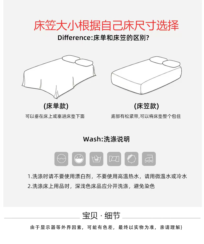 1.5米:被套1.5*2.0米 床单1.8*2.3米 枕套 47*74*2 | ¥58.00 |