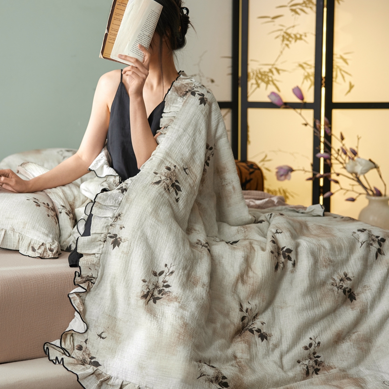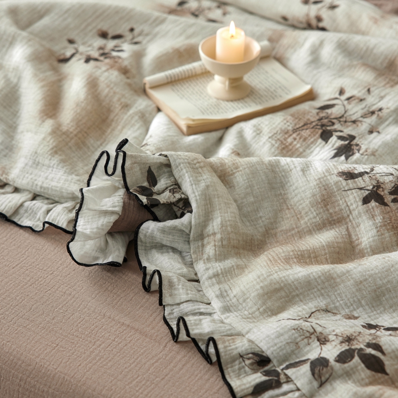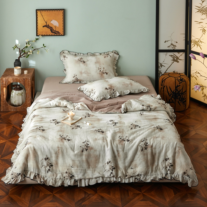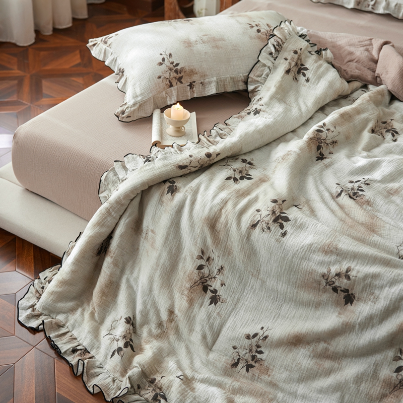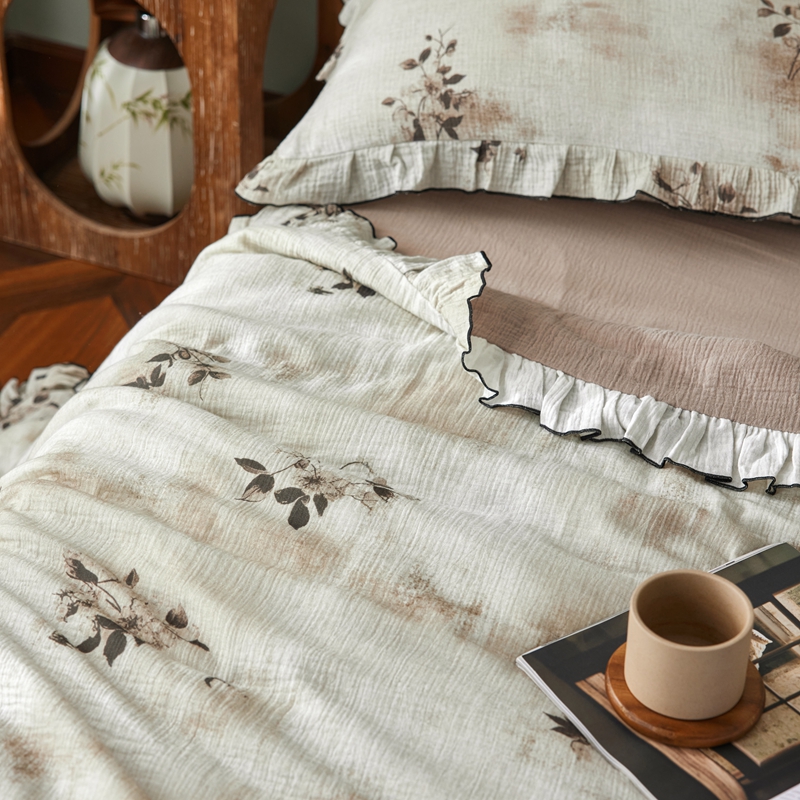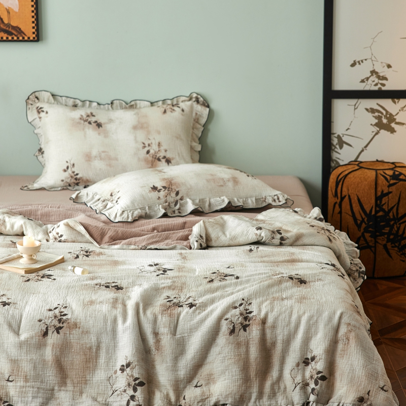 商品名称:安莱生活 2025新款全棉精梳棉双层纱绉纱数码印花夏凉被 云屿间-咖 夏被