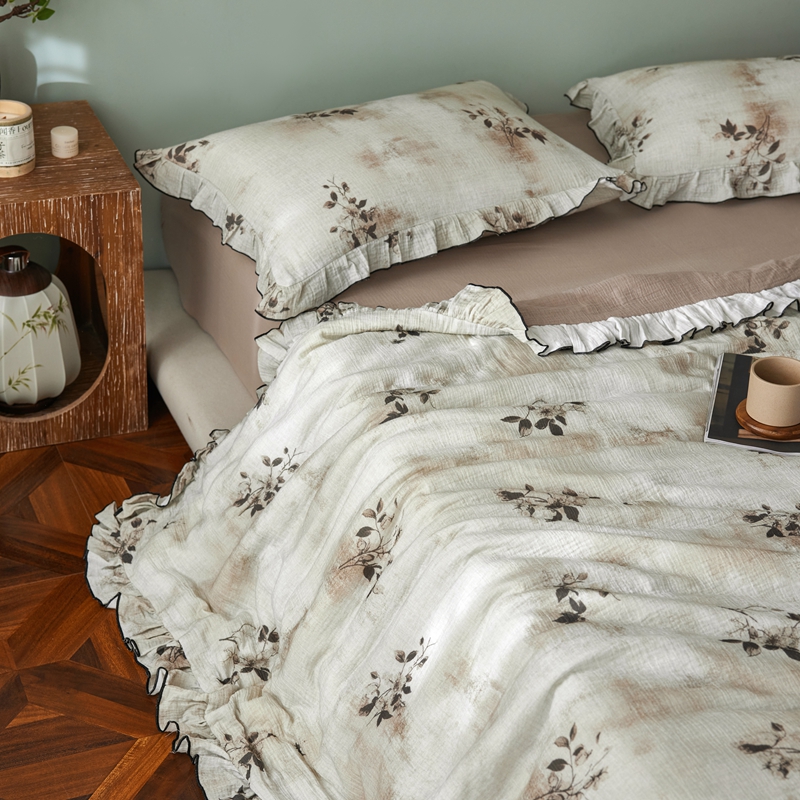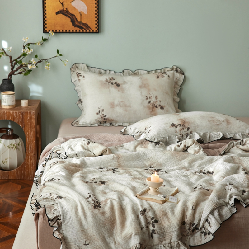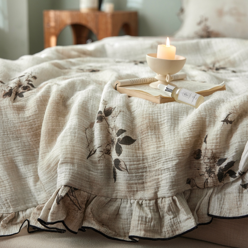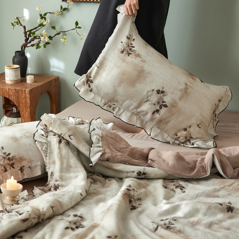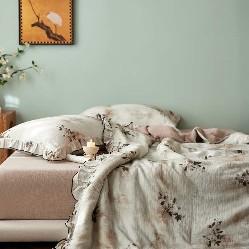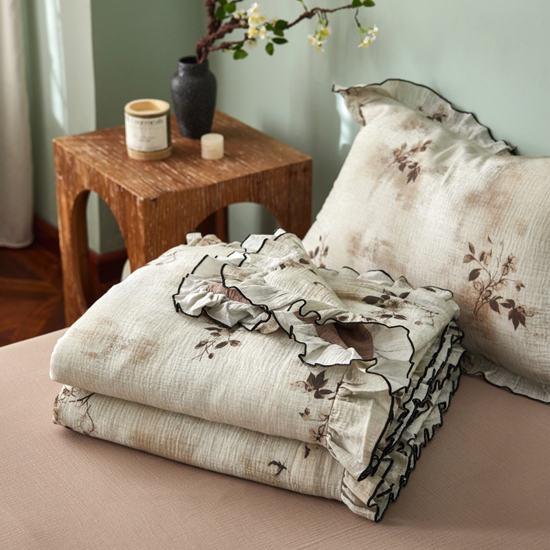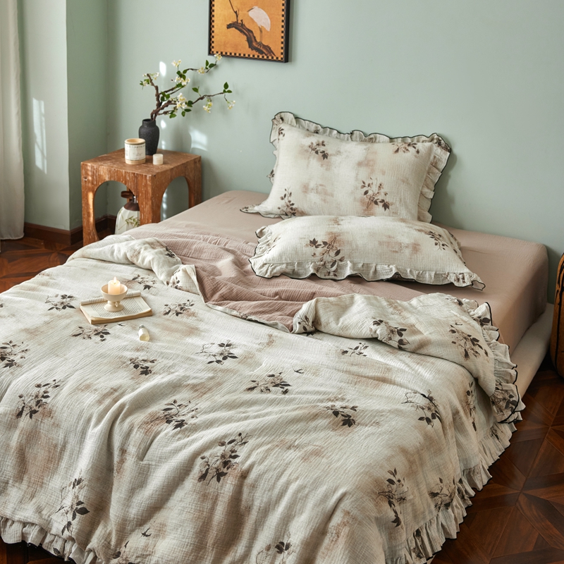 商品名称:安莱生活 2025新款全棉精梳棉双层纱绉纱数码印花夏凉被 云屿间-咖 夏被