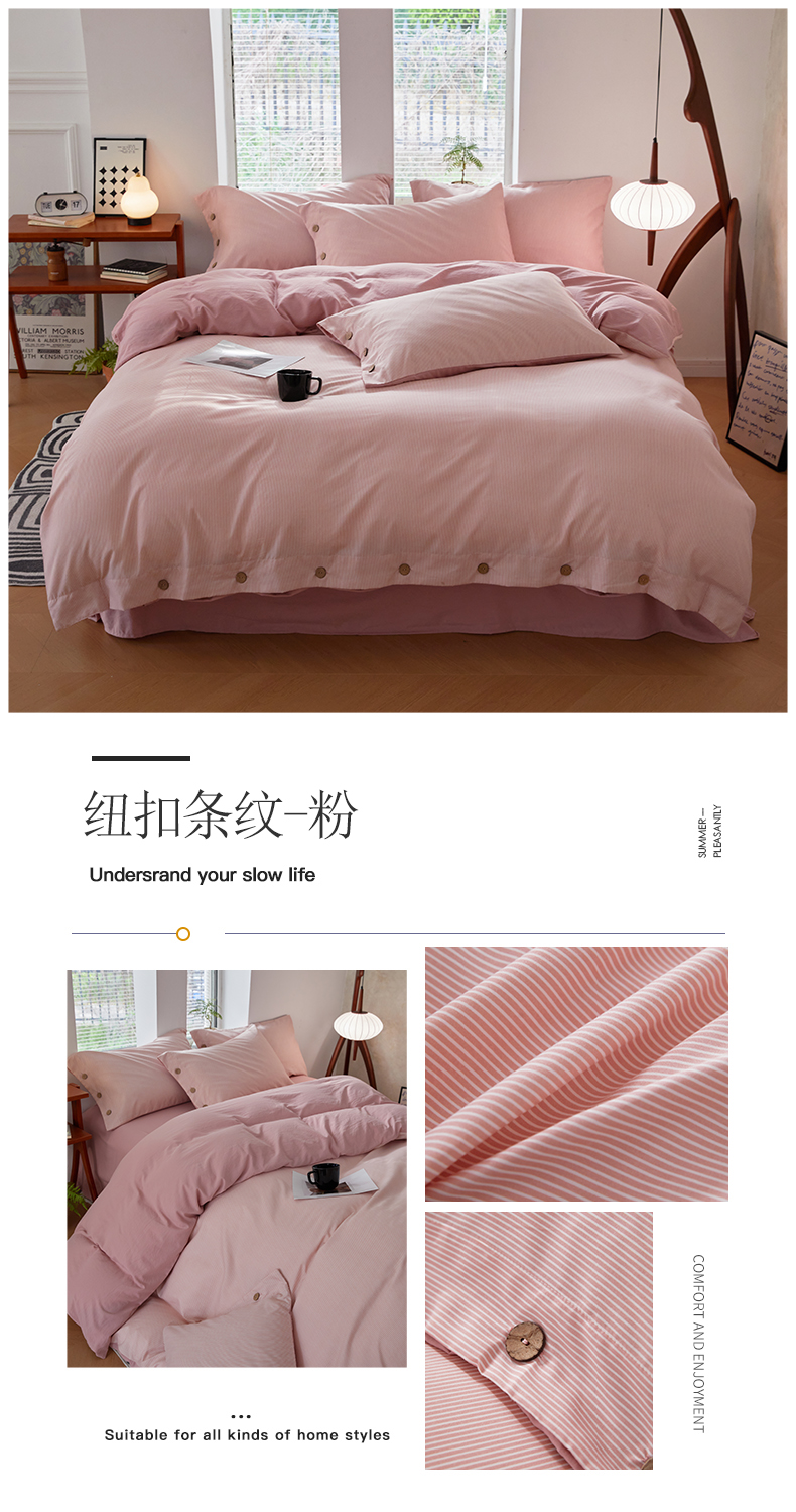 (总)yyds网供 2025新款A类条纹纽扣款无印风四件套非全棉纯棉日式水洗棉三件套