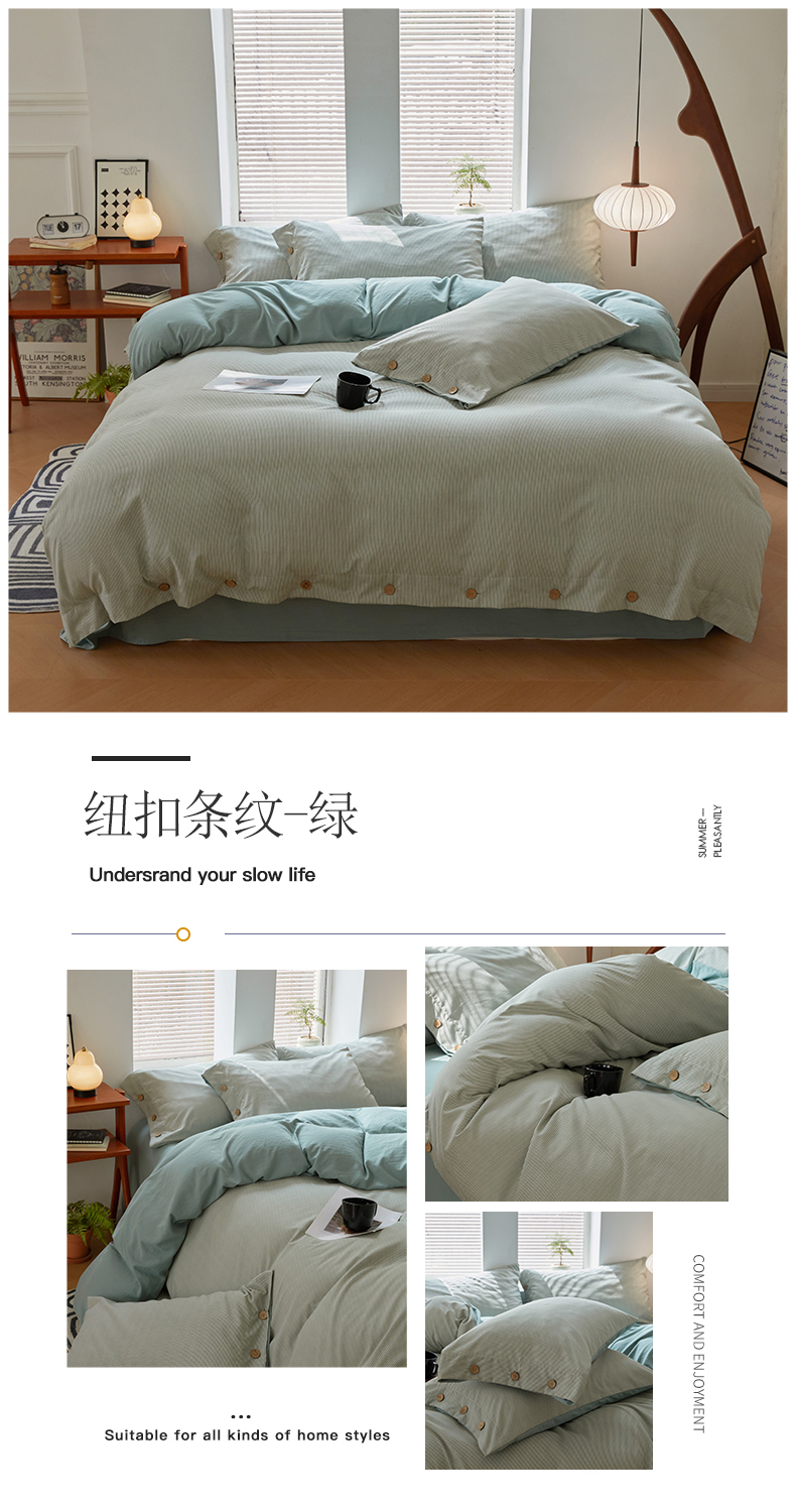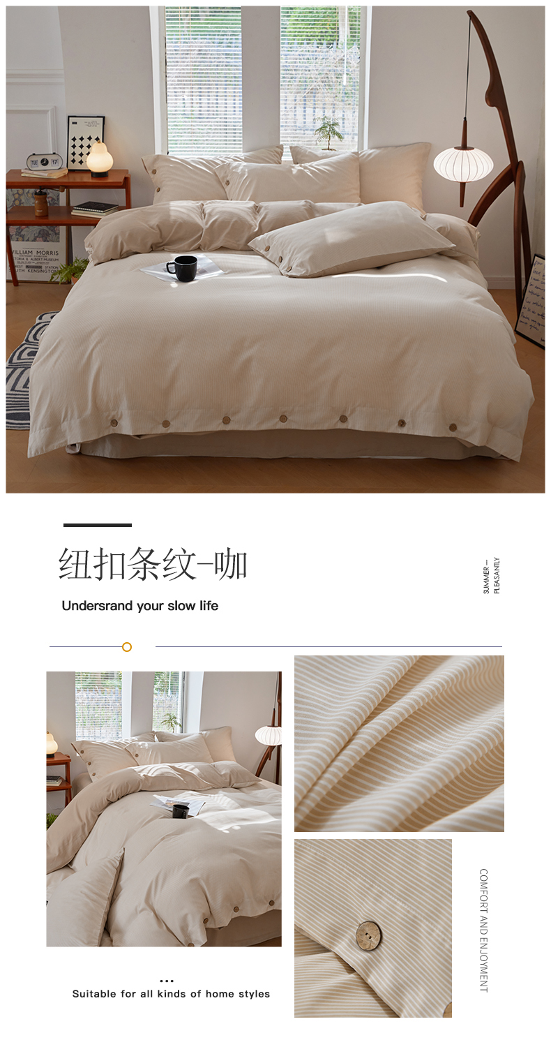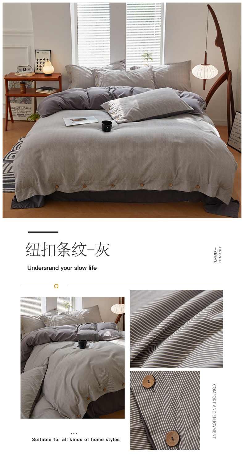 商品名称:(总)yyds网供 2025新款A类条纹纽扣款无印风四件套非全棉纯棉日式水洗棉三件套