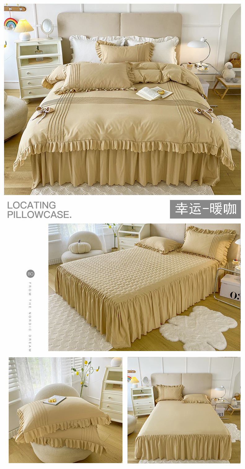 当前位置: 91家纺网 > 商品网购 > 床品套件 > 四件套 > 全棉普通四件套 > yyds网供 2025新款韩版公主风加高床裙款四件套非全棉纯棉夹棉春夏秋冬被套床单床笠[有买家秀] 幸运暖咖