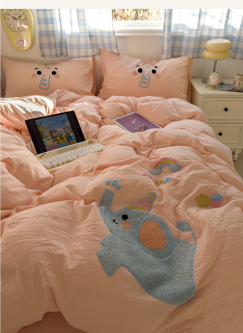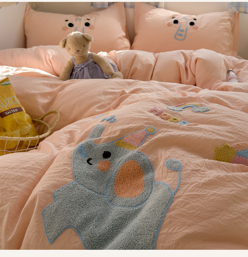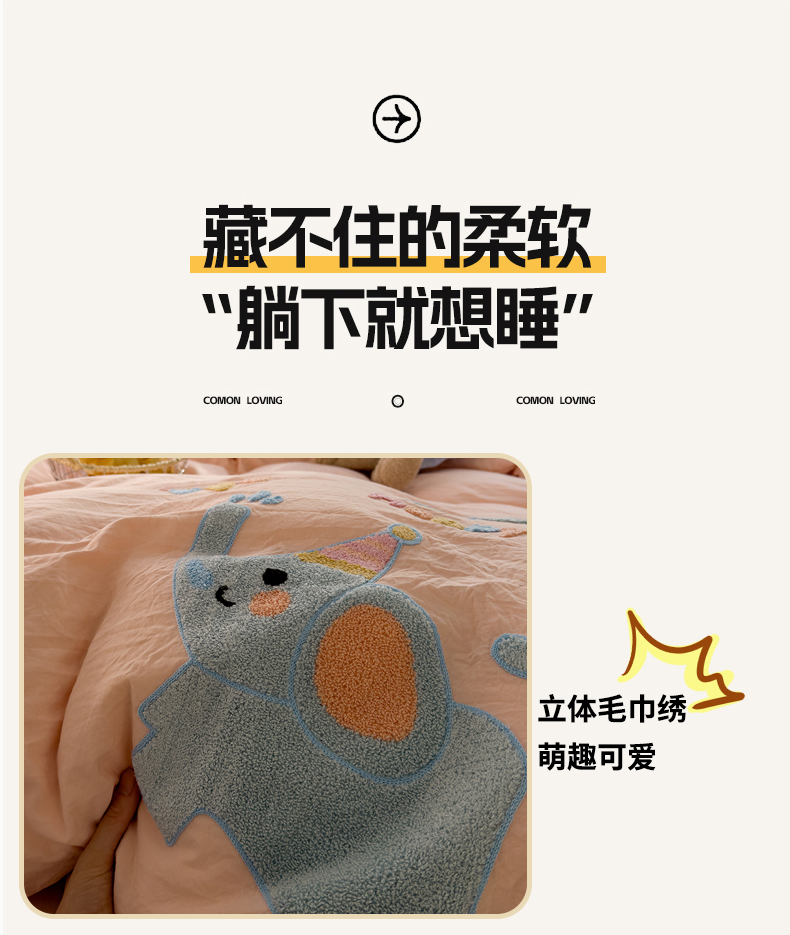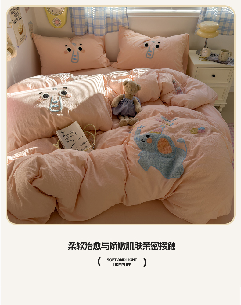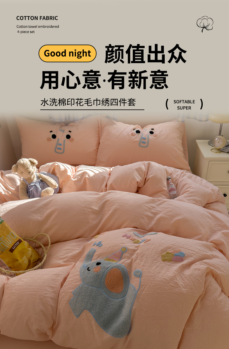 当前位置: 91家纺网 > 商品网购 > 床品套件 > 四件套 > 磨毛活性四件套 > 优兰朵 2025新款学生卡通水洗棉毛巾绣三件套床品四件套系列(提供买家秀) 快乐小飞象-粉玉