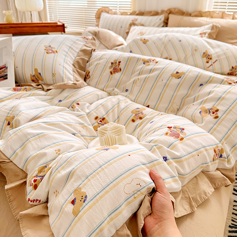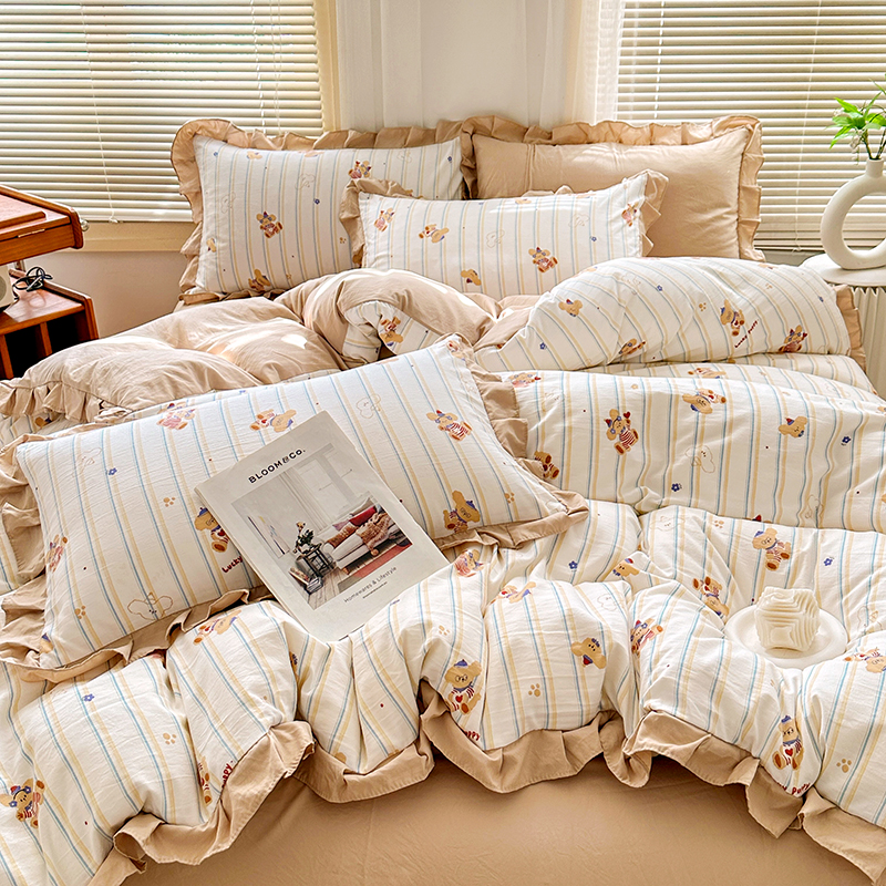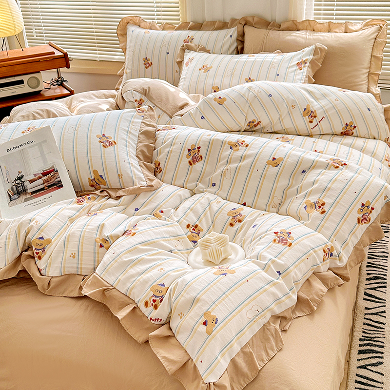 佳一家纺 2025新款亲肤水洗棉四件套系列 快乐熊