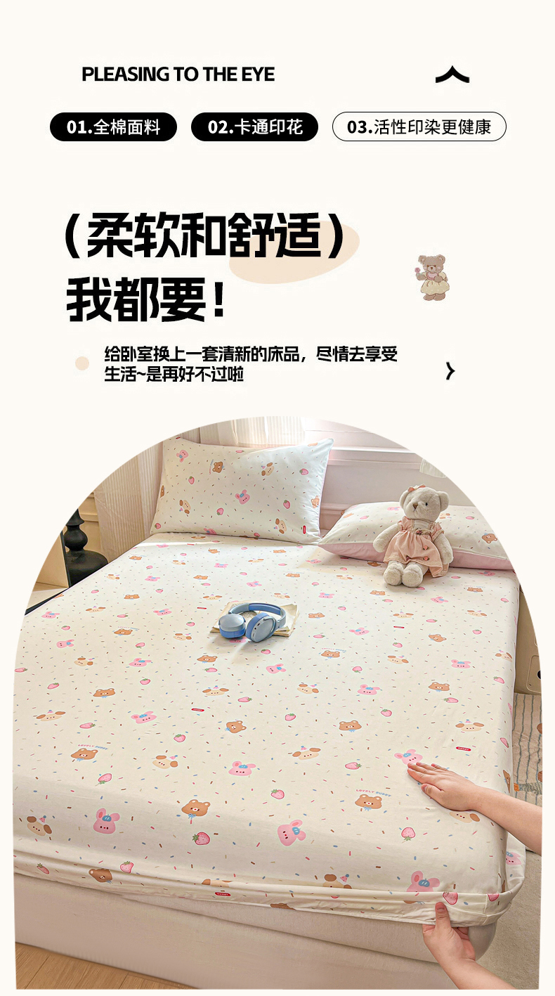 商品名称:Sweet dreams甜梦 2025新款全棉纯棉小清新印花床笠单品单床笠床笠单件 奇趣动物园