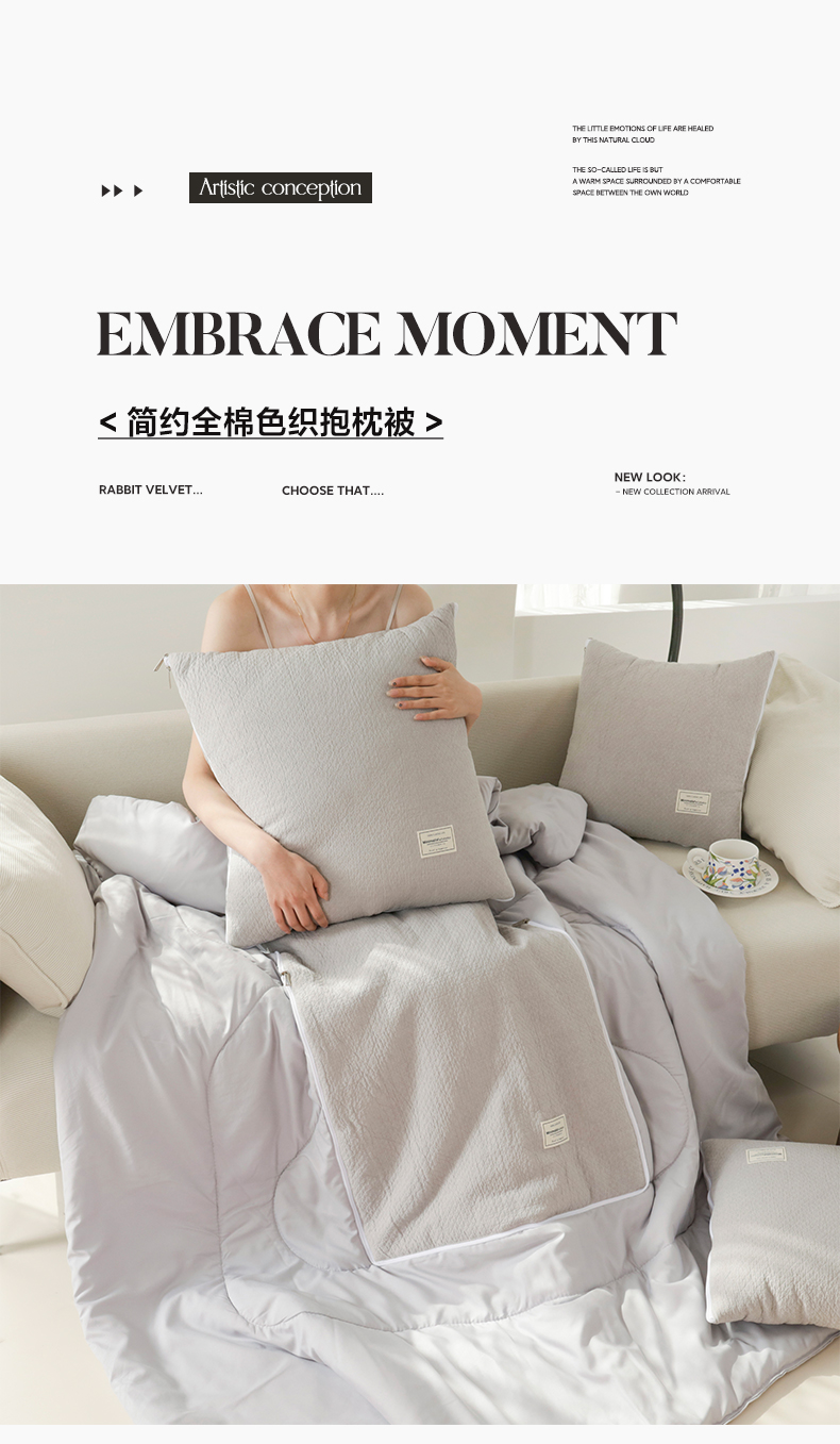 商品名称:番茄+ 2025新款简约全棉色织抱枕被 大地灰