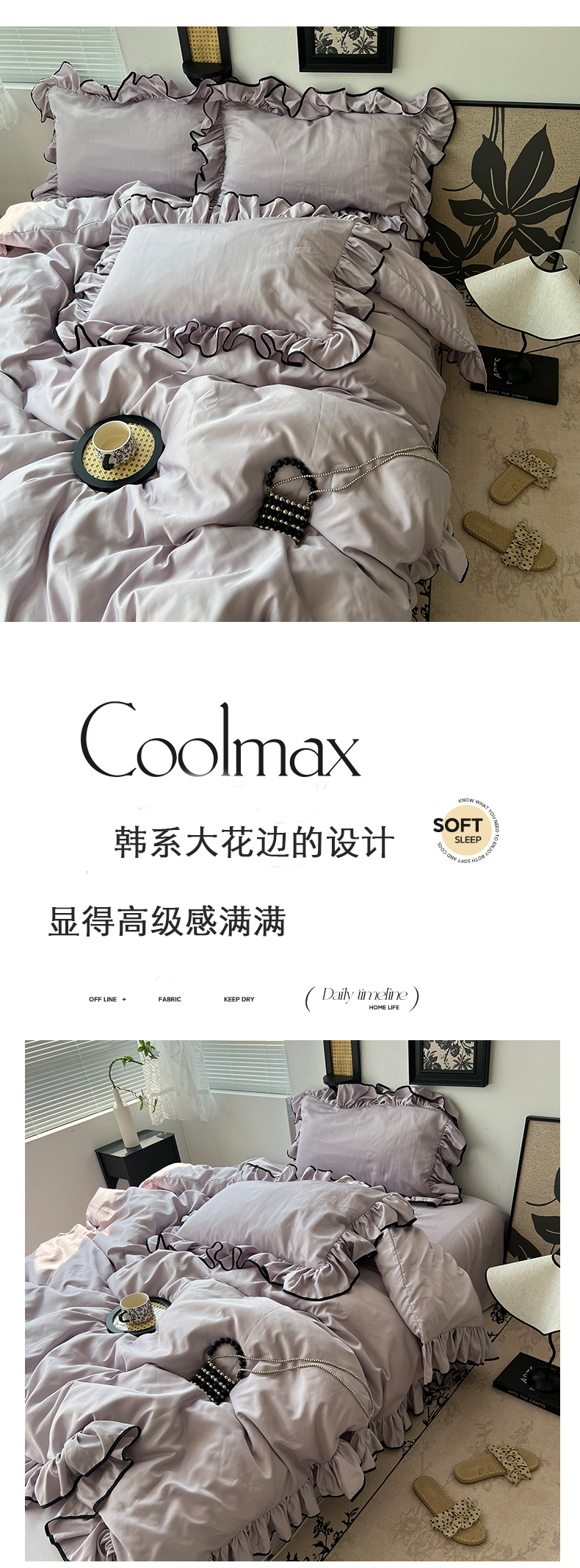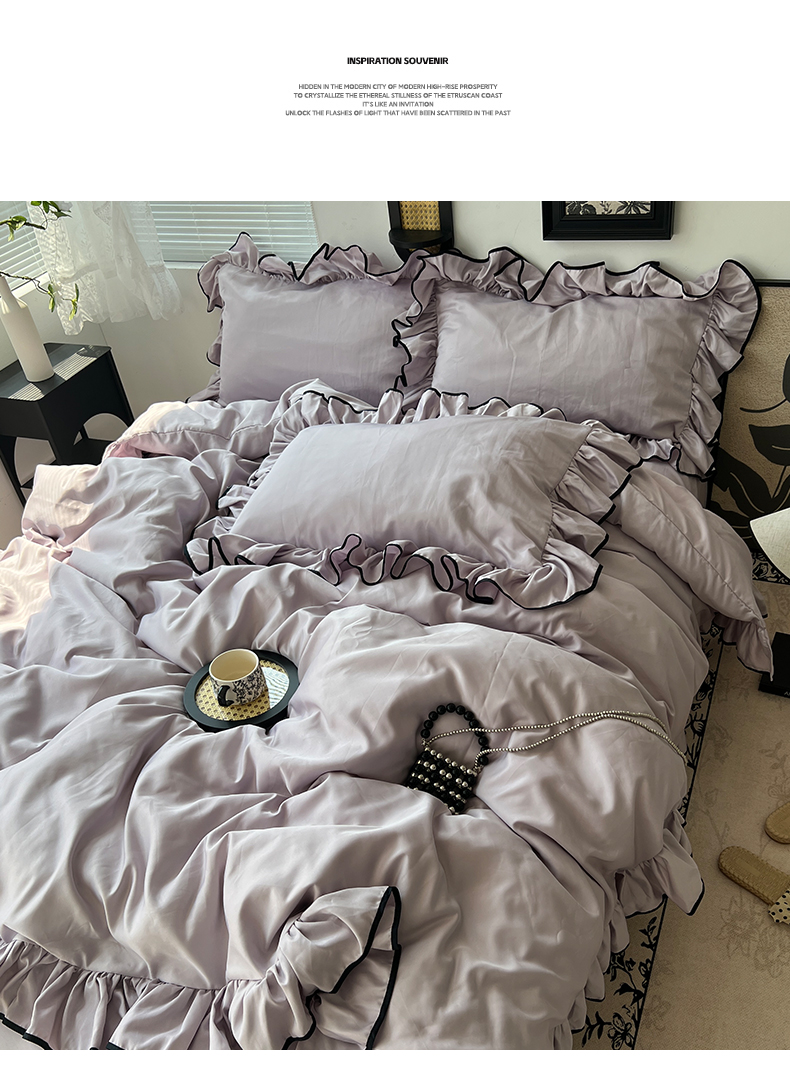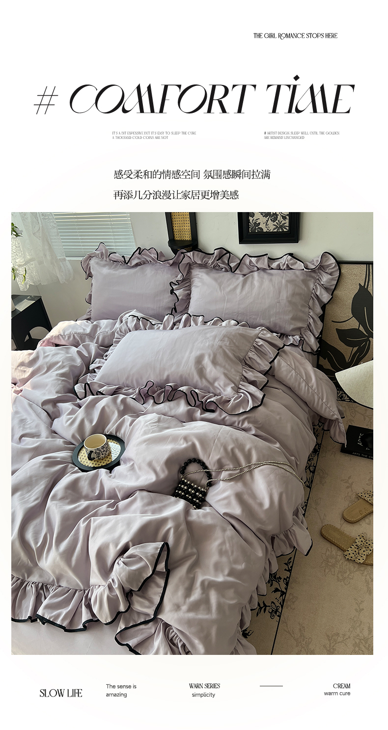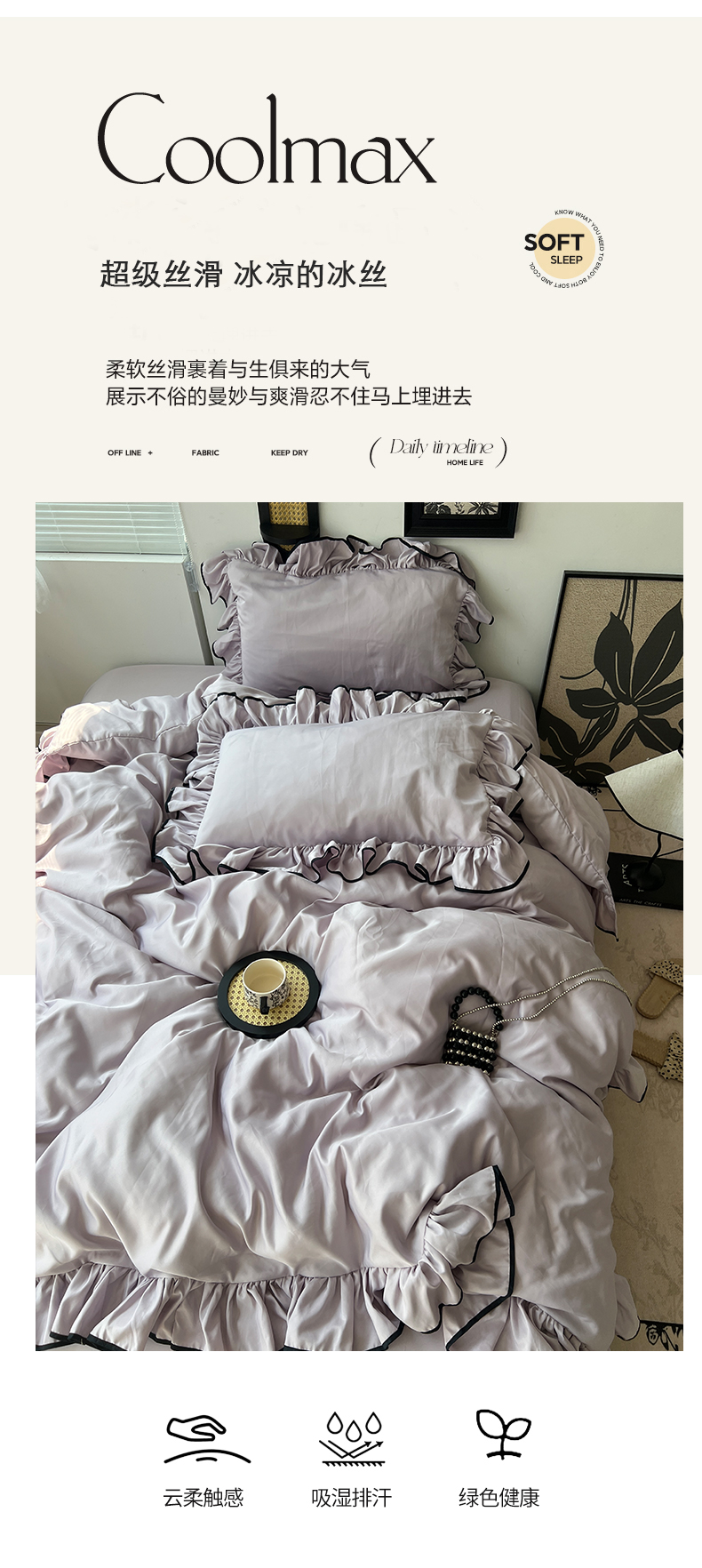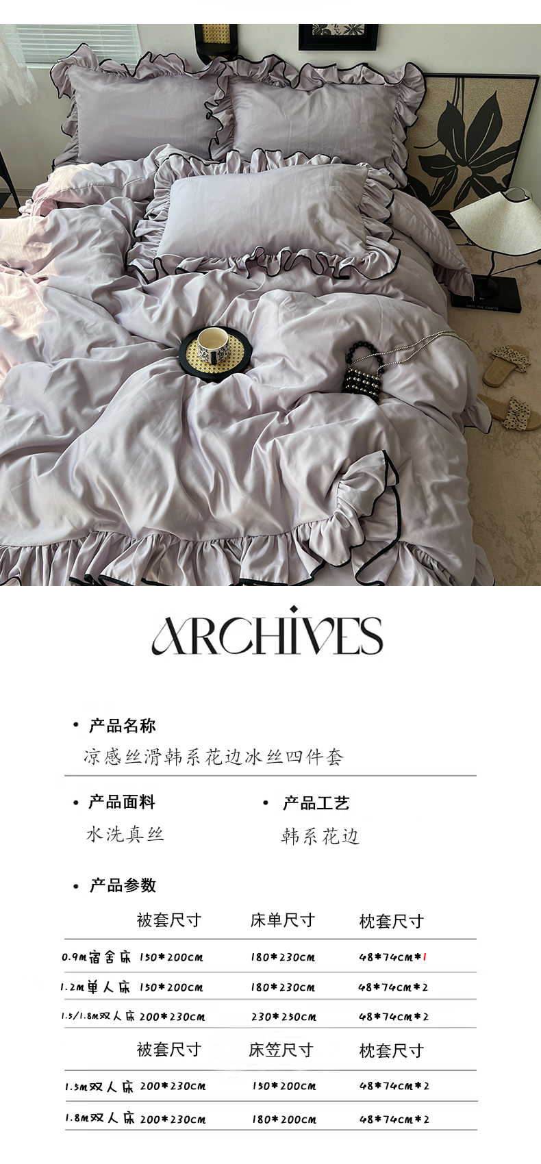 原素 2025夏季冰丝韩系大花边水洗真丝四件套 沐言-香芋紫