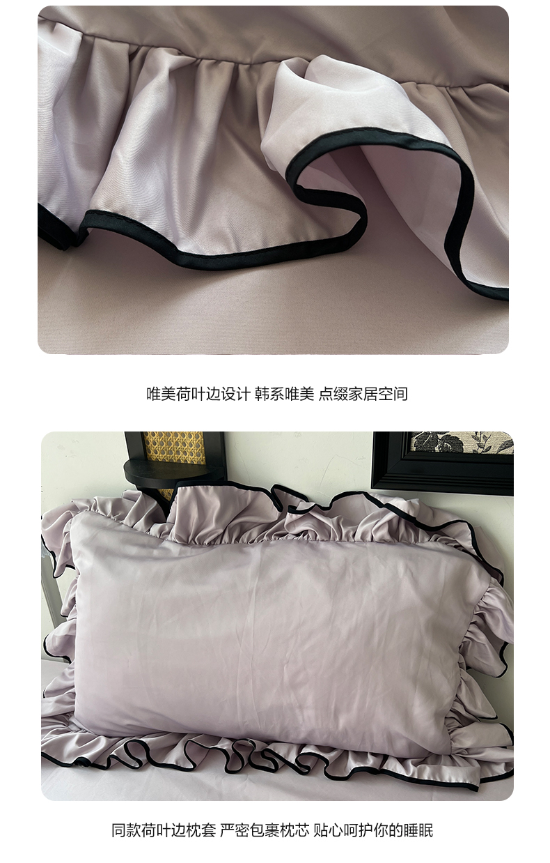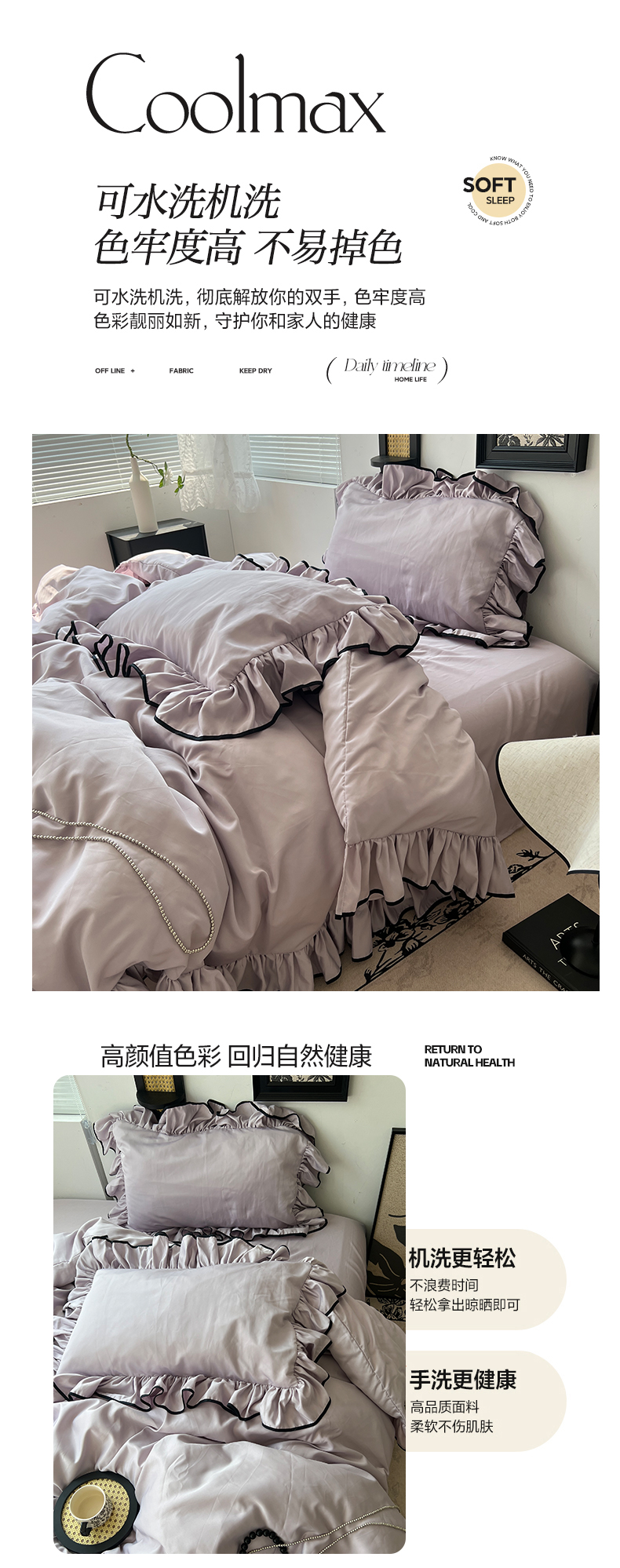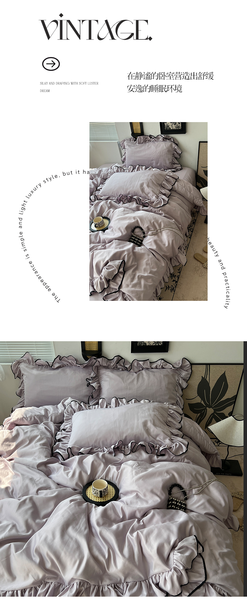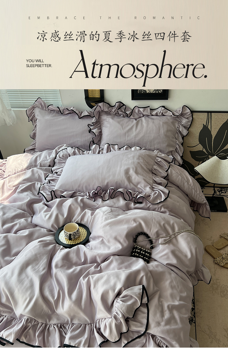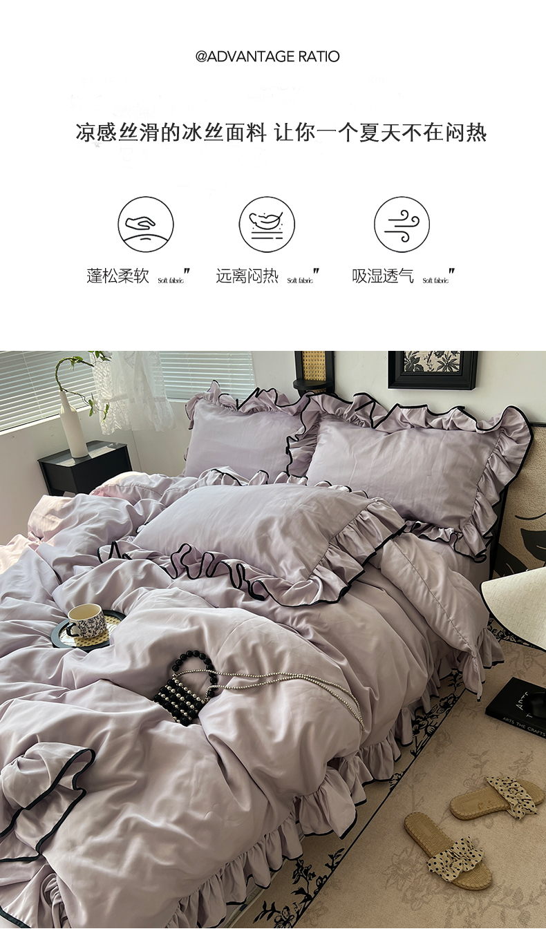 商品名称:原素 2025夏季冰丝韩系大花边水洗真丝四件套 沐言-香芋紫