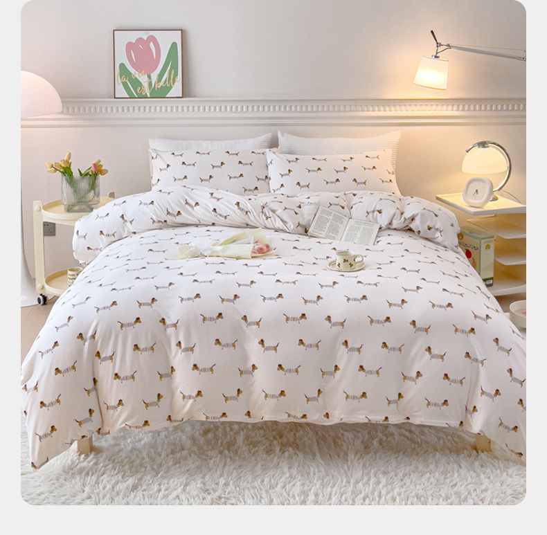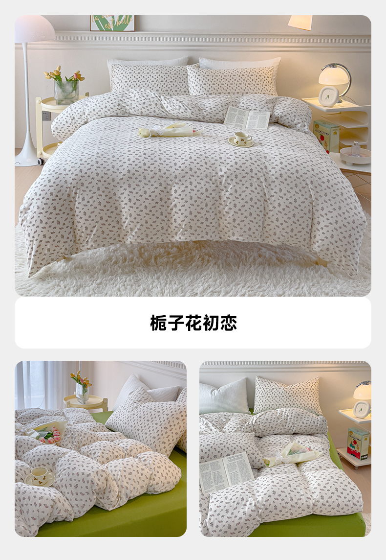 当前位置: 91家纺网 > 商品网购 > 床品套件 > 四件套 > 伊嫚家居 38_新款日式新品全棉针织棉A类活性印花四件套天竺棉小碎花复古亲肤被罩床笠款套件 紫黛花语