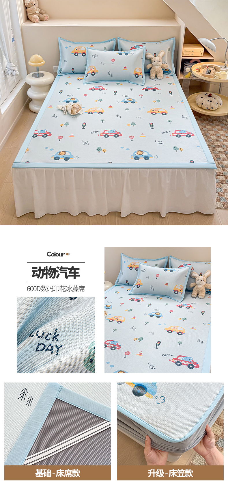 典曼家纺 2025新款600D数码印花冰藤席席子凉席-床笠款 狮子王-床笠款