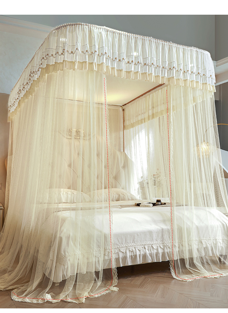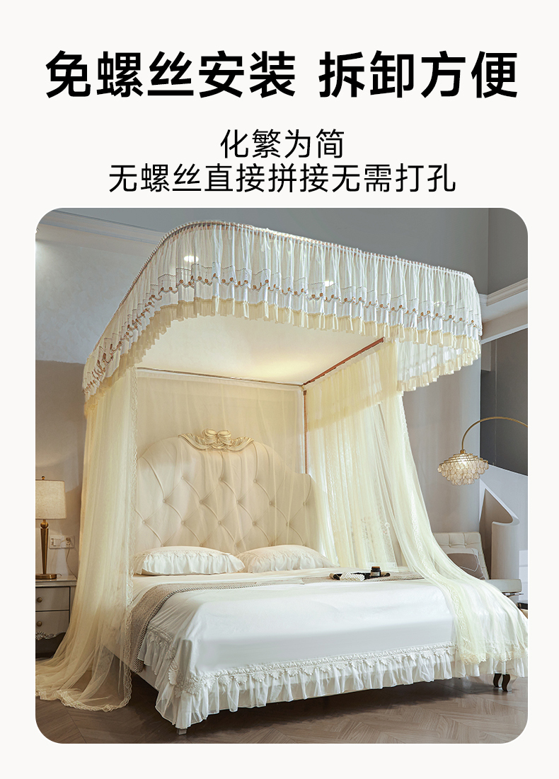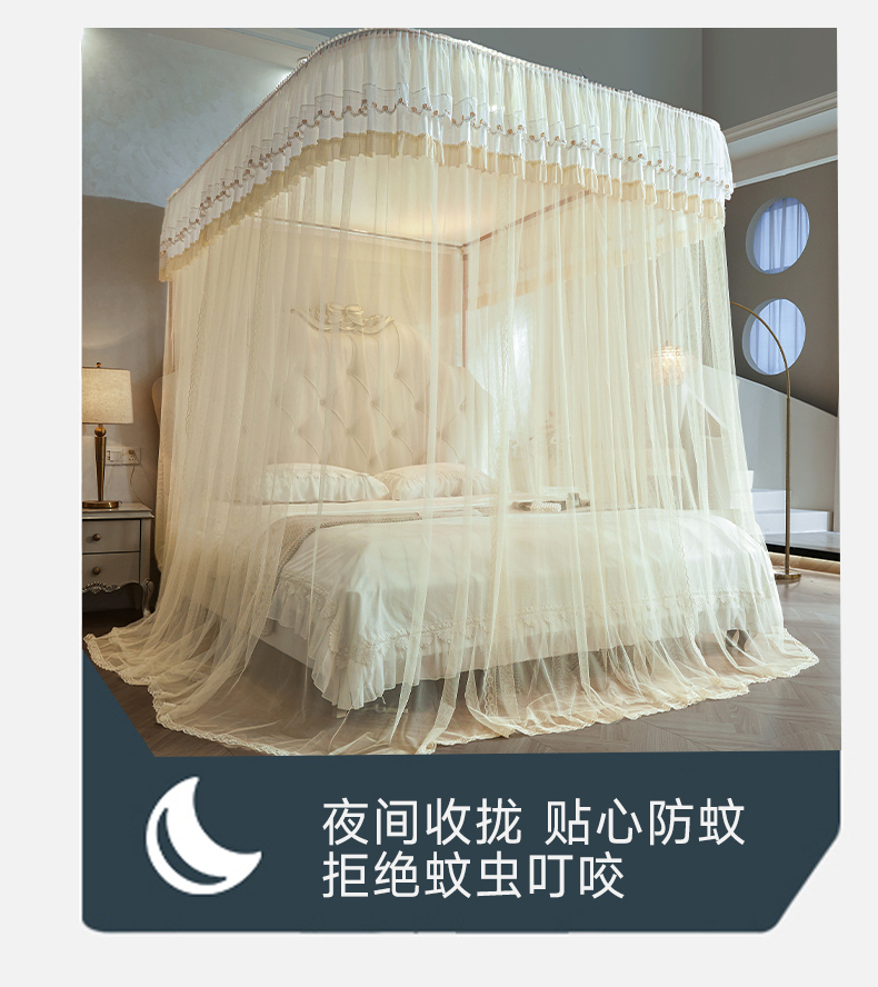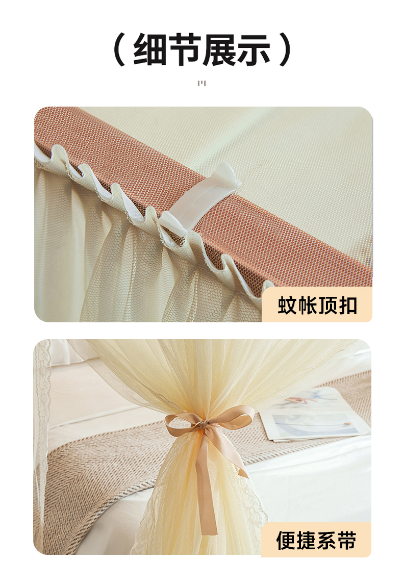 (总)梦尔佳蚊帐 2025新款双层花边床笠式三开门蚊帐-858怜香惜玉系列,优雅黄,富贵白,高级灰,温柔玉,清爽蓝