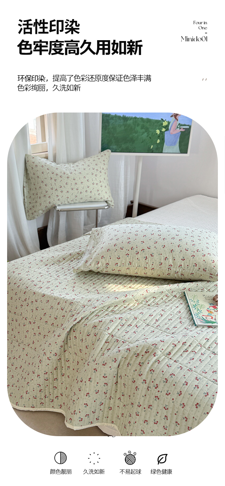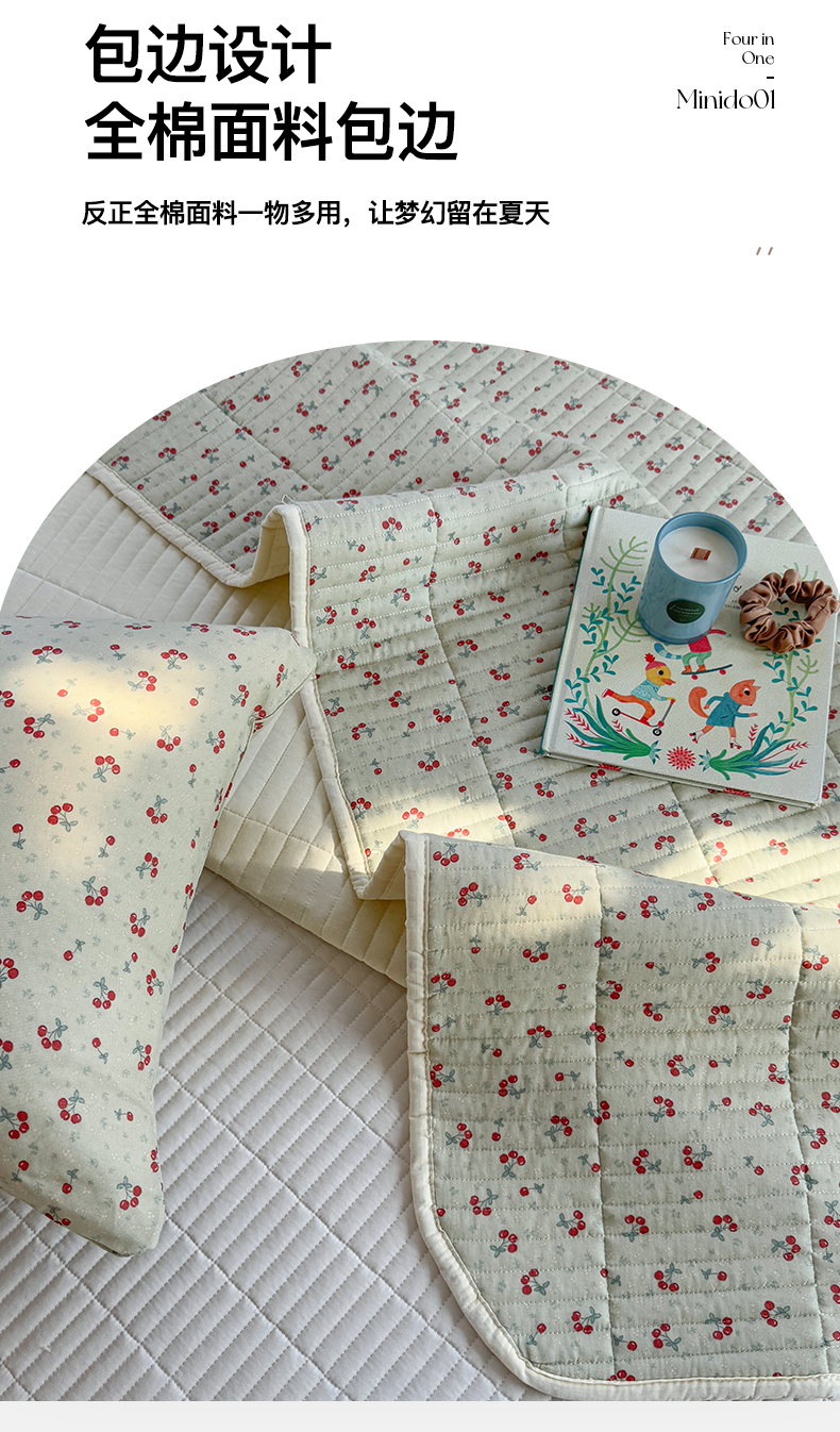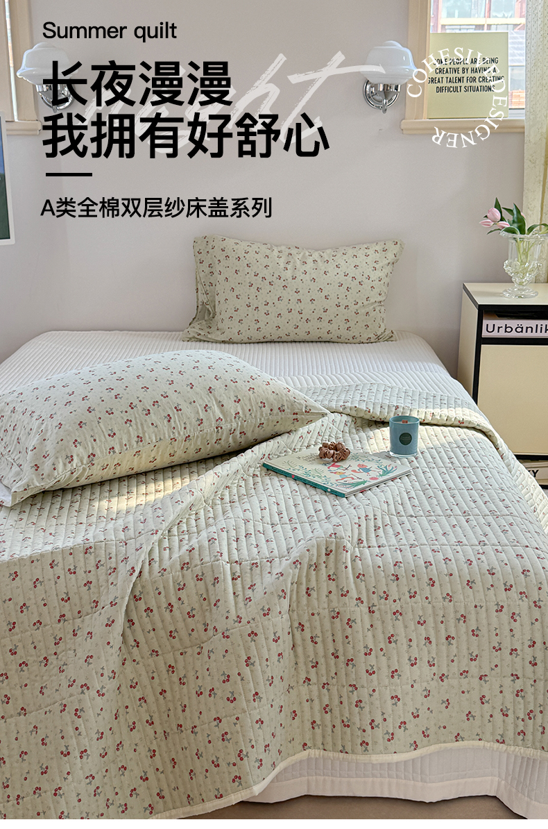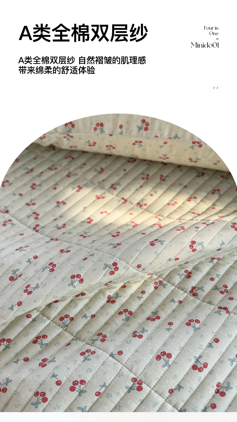 商品名称:TT.one 塔塔家居 2025新款全棉双层纱贝壳边夏被系列 床盖·小樱桃
