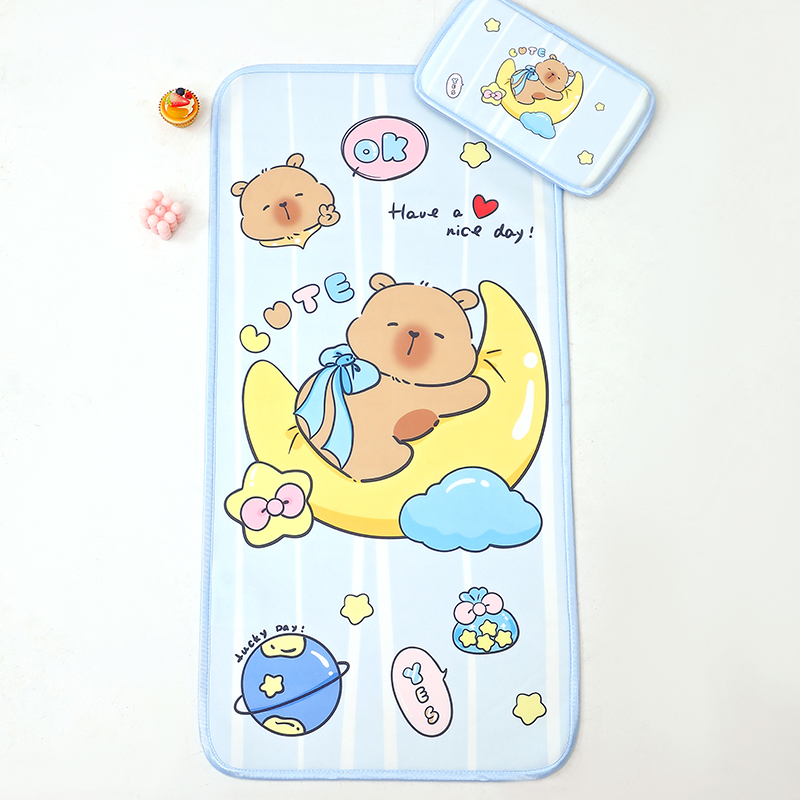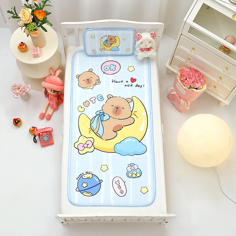 (总)八零年代 2025新品云柔牛奶丝儿童凉席套件,爱心小兔,凹凸曼,粉红马,可爱女孩,恐龙王子,快乐卡皮,蓝色小狗,泡泡女孩,赛 罗,条纹卡皮,挖掘机,云朵小兔,星星卡皮巴拉,月亮卡皮巴拉