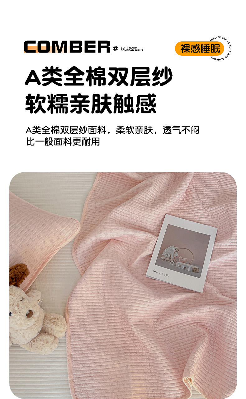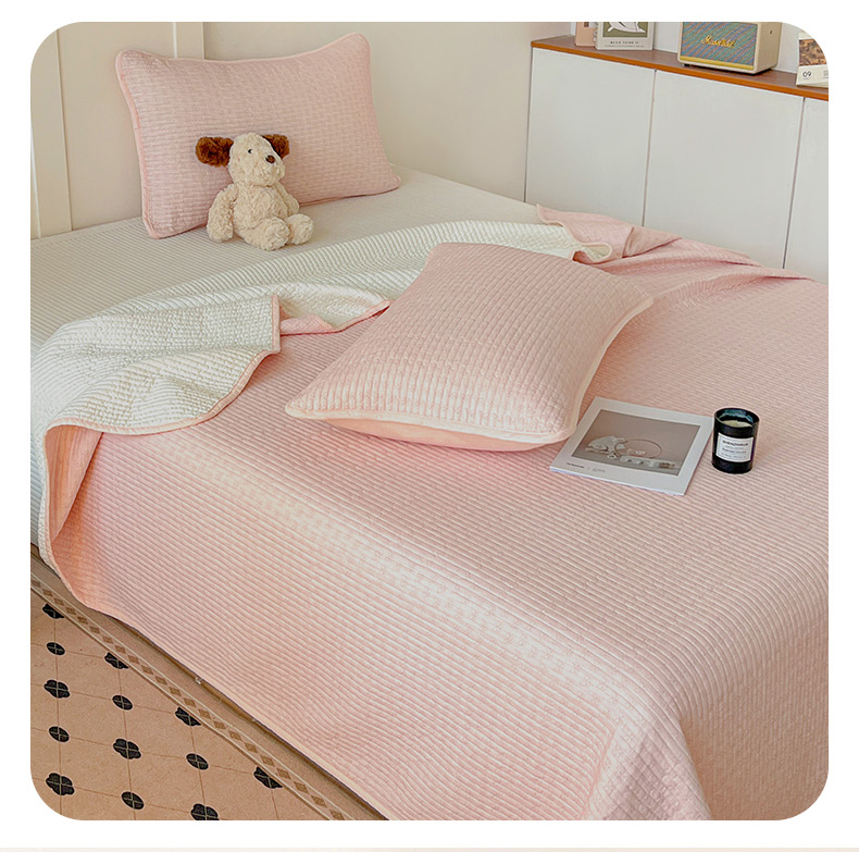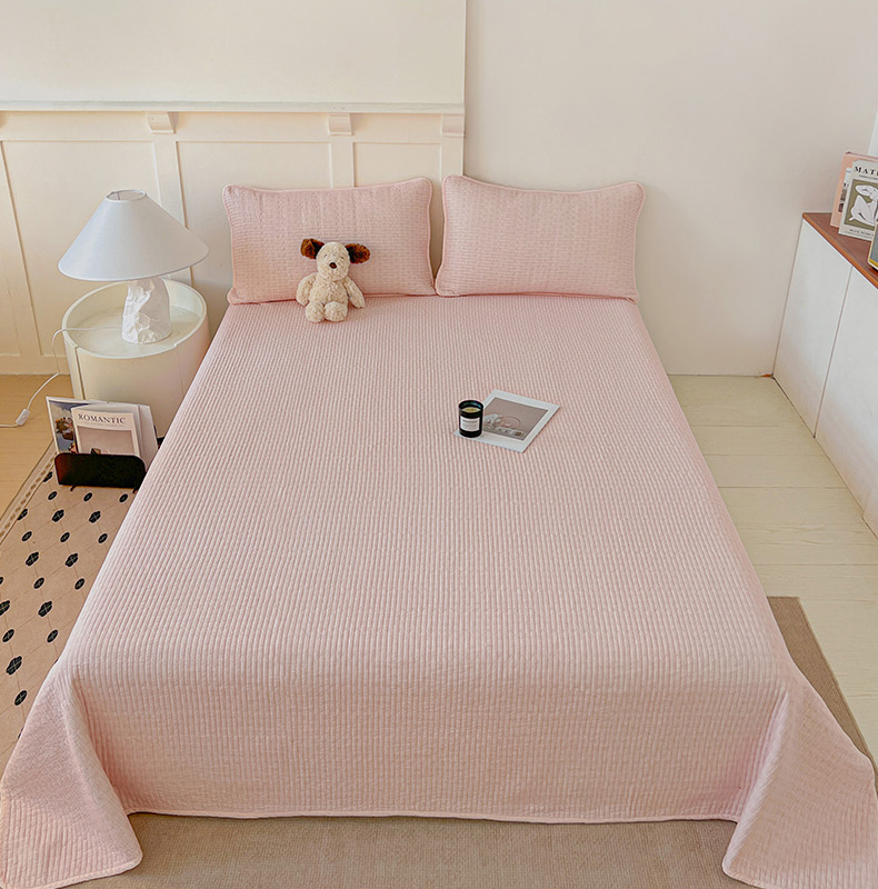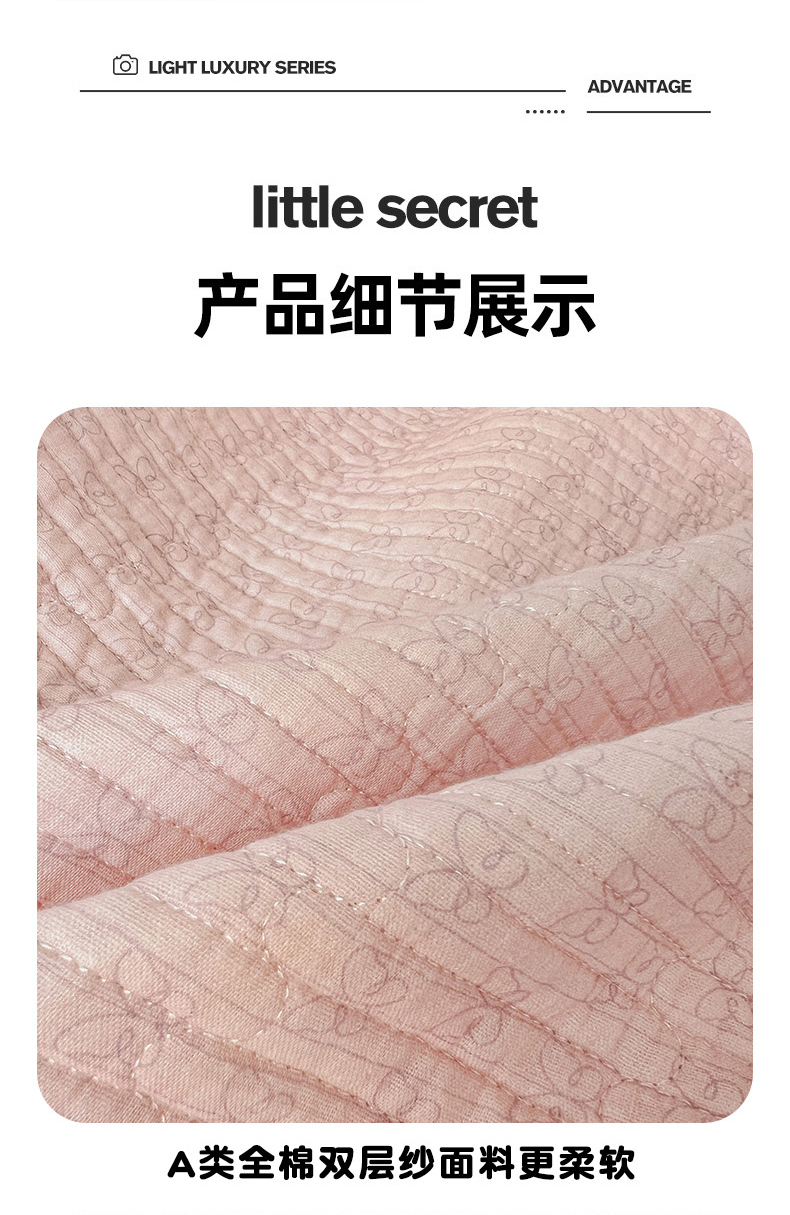 • 91家纺网 家纺一手货源 找家纺 2025新款A类纯棉双层纱床盖  梦蝶-粉
