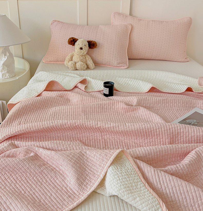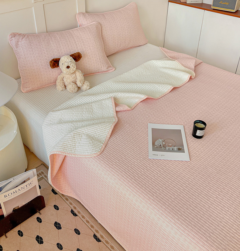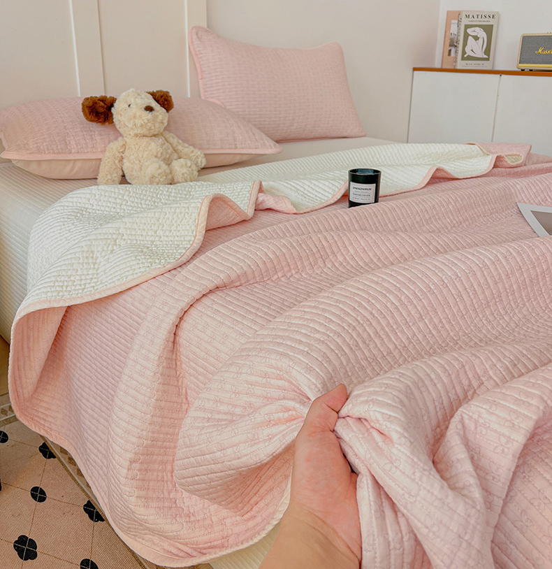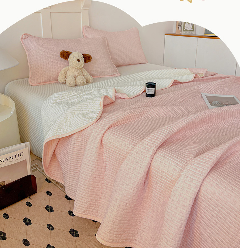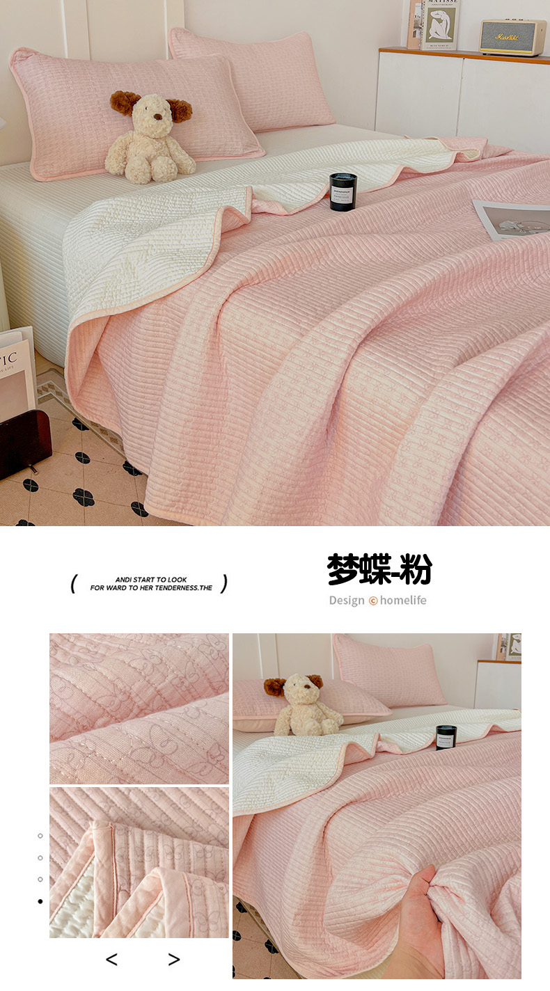 2025新款A类纯棉双层纱床盖 梦蝶-粉