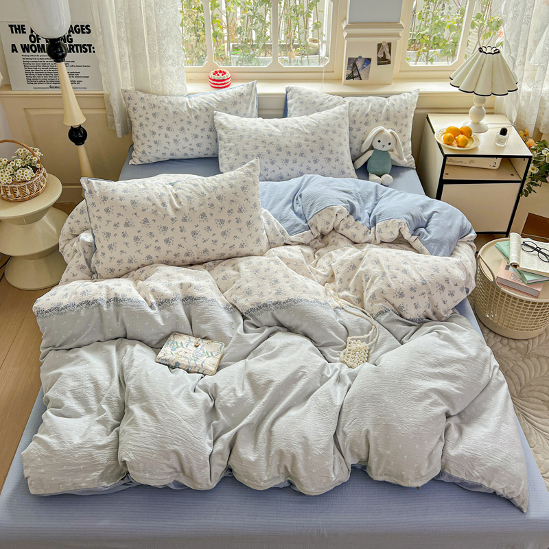 (总)一比一 2026新款云感皱皱双层纱四件套-全棉花边款【控价99元销售】,半夏绿,百福蓝,薄荷微凉,春风里,春晓,豆蔻,蝴蝶梦,可颂,兰黛,山野栀子,素颜,太妃糖,心动,遇见,芝士奶酪,紫爱心,紫苏,花园兔,蜡笔画,小黑兔,白茶-绿,初恋,莱茵河畔,桃花诺