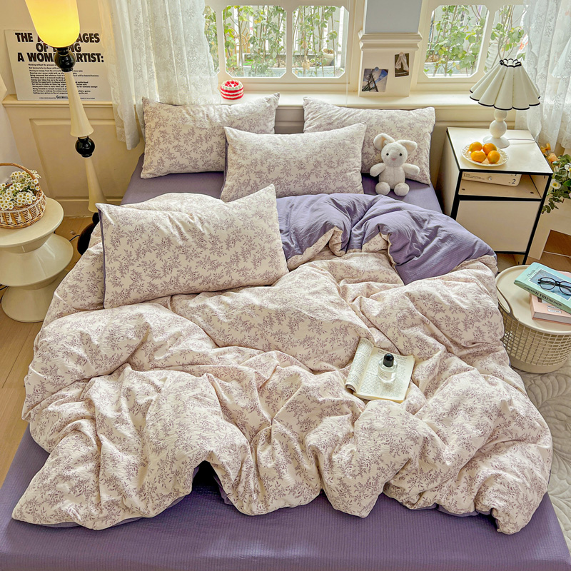 一比一 2026新款云感皱皱双层纱四件套-简单款 紫苏