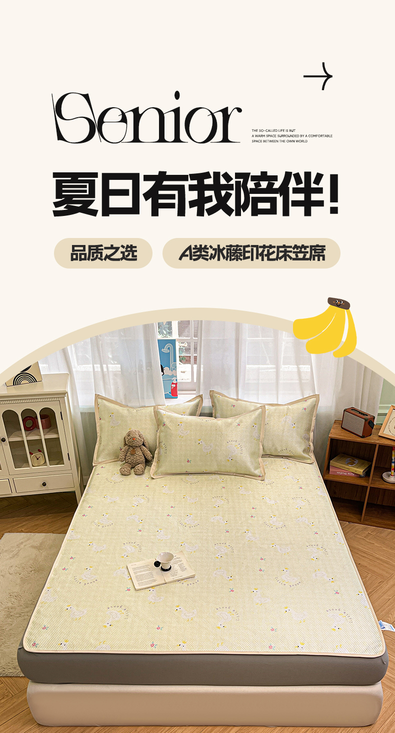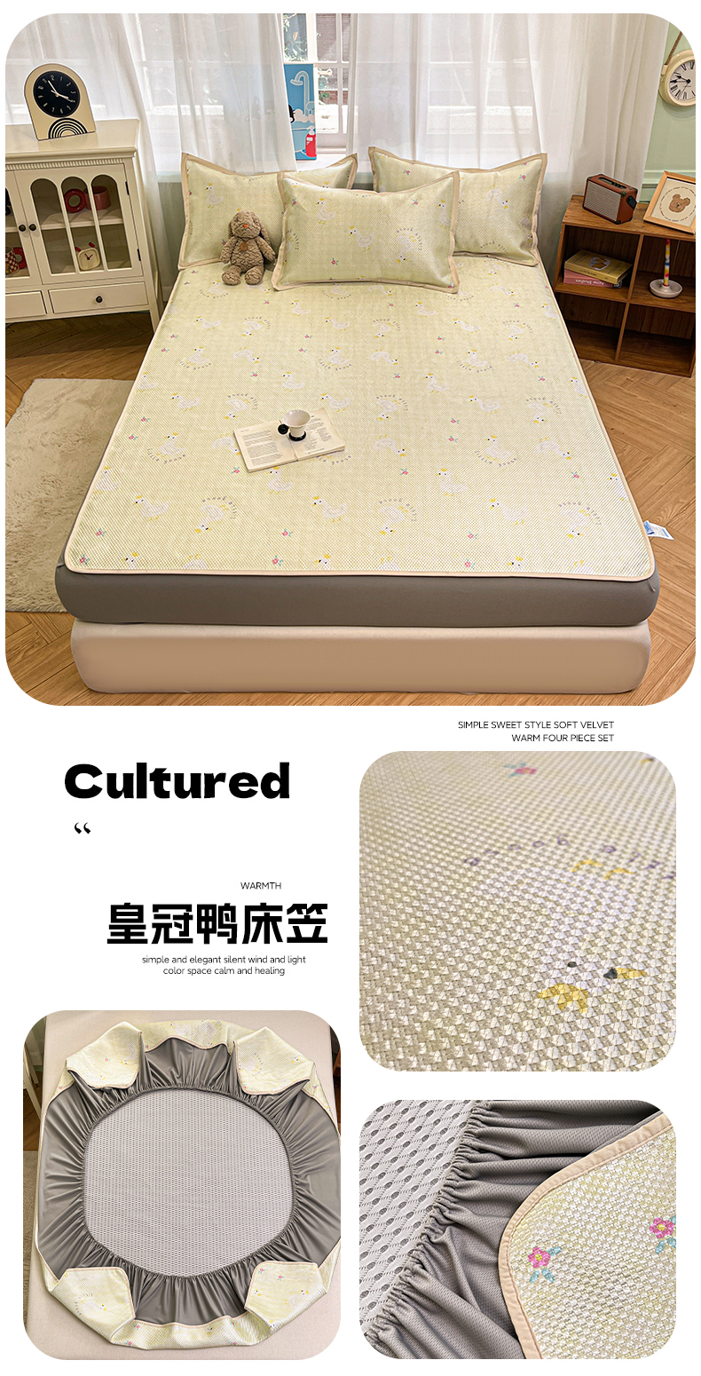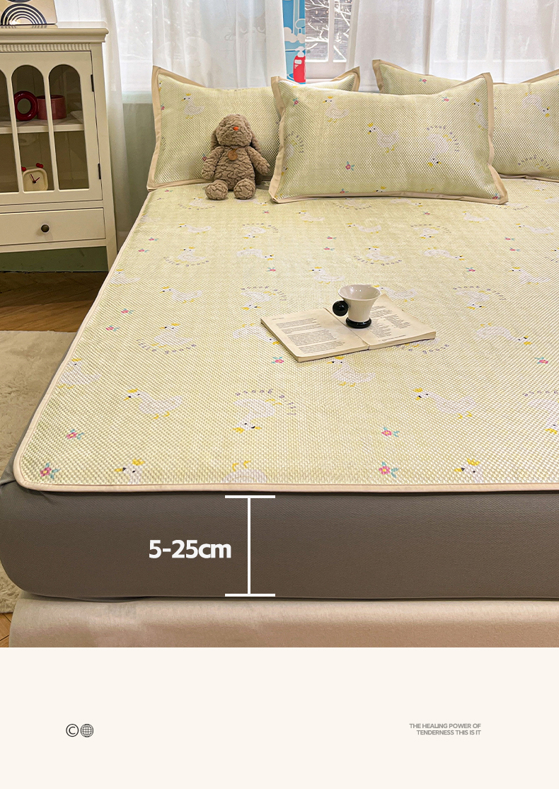 商品名称:布卢姆床垫2025新款A类数码印花冰藤席夏凉席--床笠款 皇冠鸭床笠