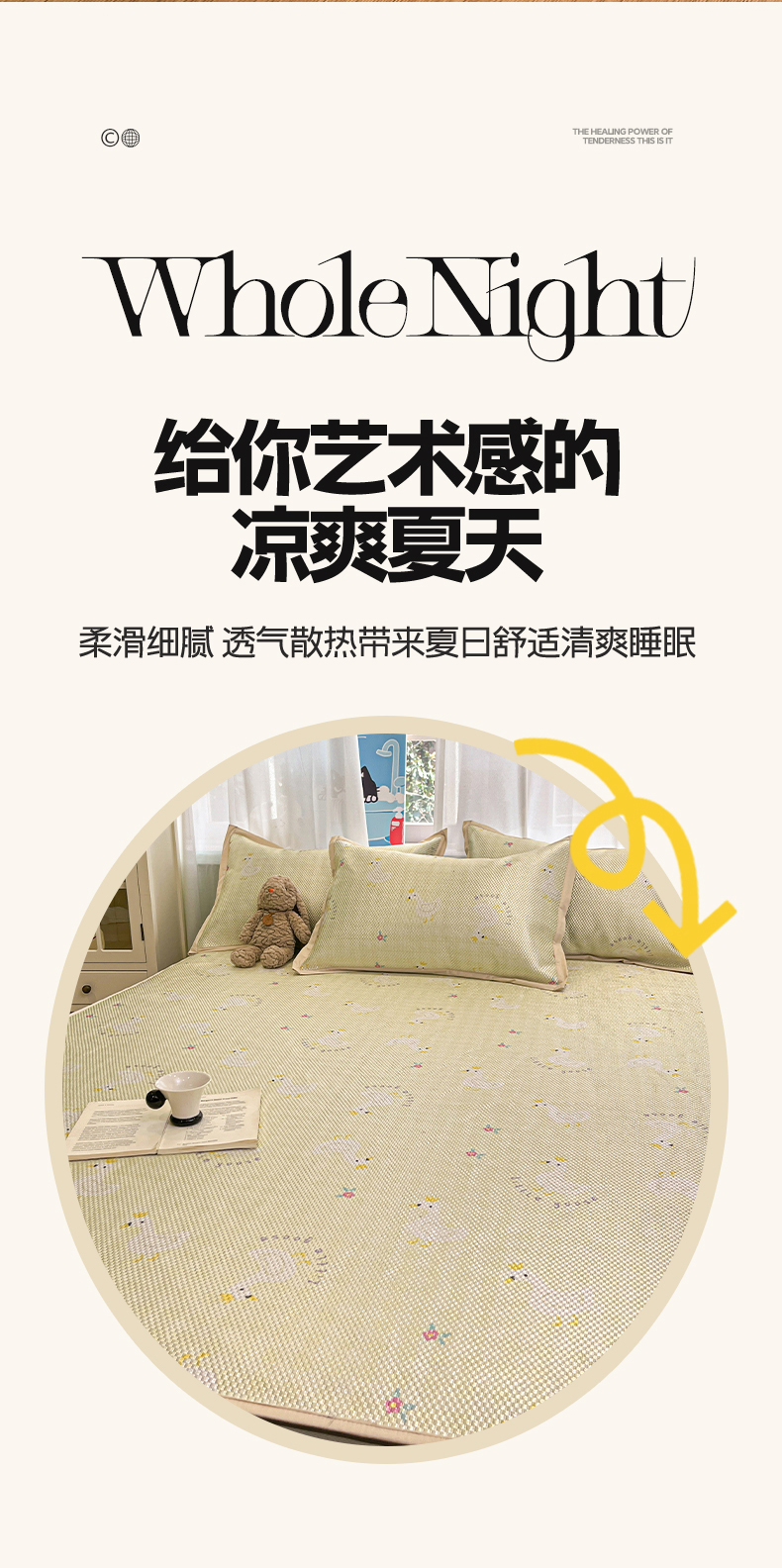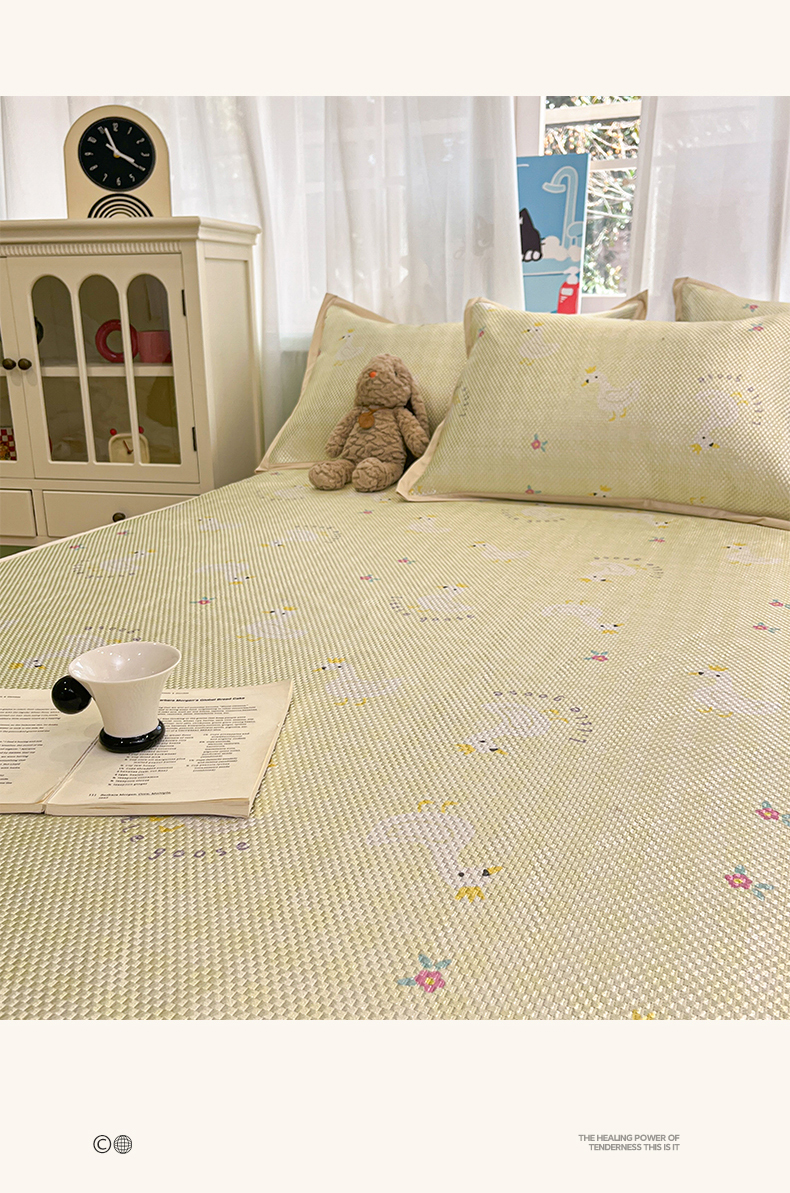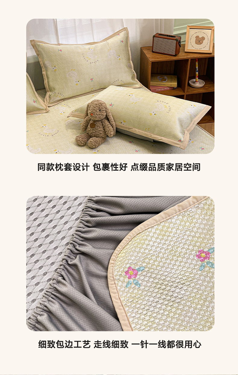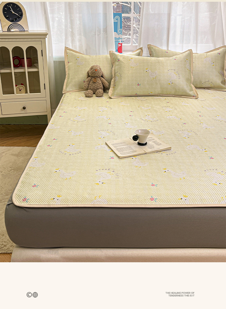 商品名称:布卢姆床垫2025新款A类数码印花冰藤席夏凉席--床笠款 皇冠鸭床笠