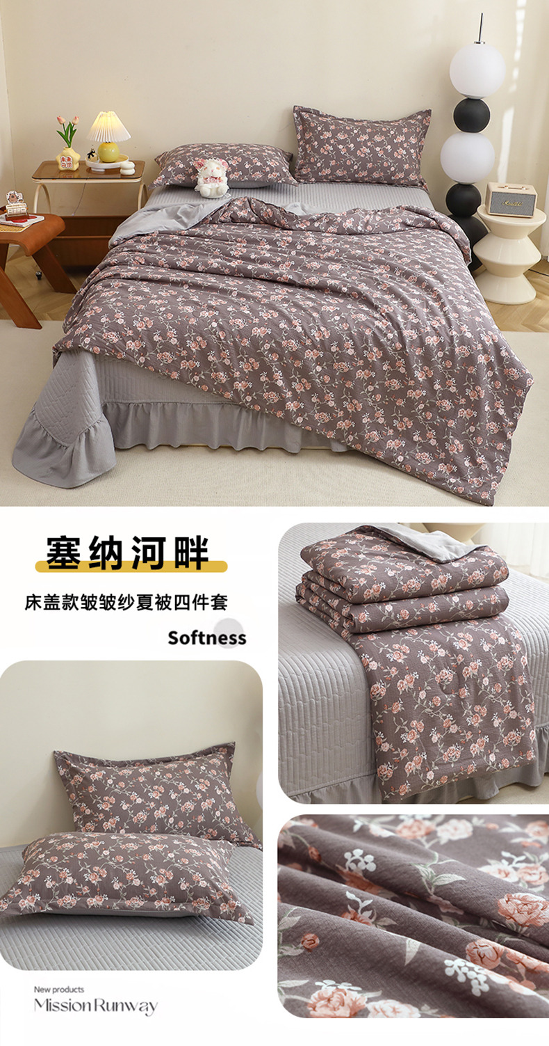 • 91家纺网 家纺一手货源 找家纺 一比一家纺 2025新款云感皱皱双层纱床盖夏被四件套 塞纳河畔