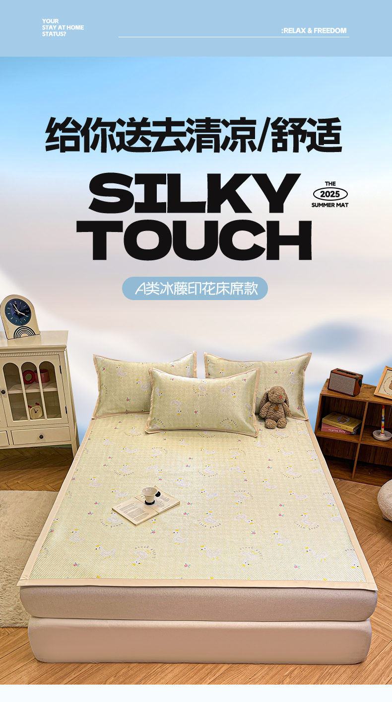 商品名称:布卢姆床垫2025新款A类数码印花冰藤席夏凉席--床席款 皇冠鸭
