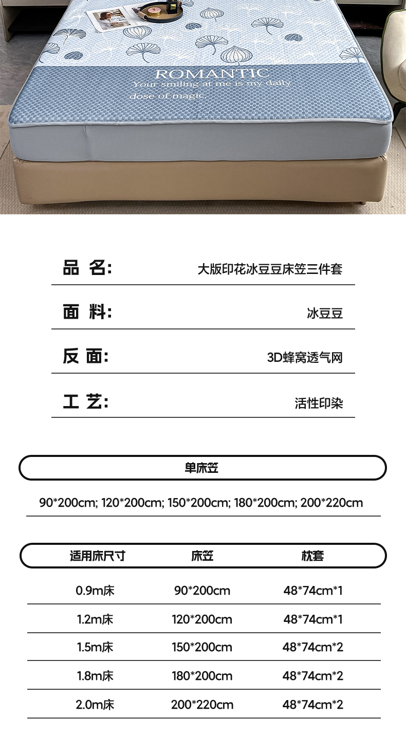 商品名称:慕梵家居 2025新款大版印花冰豆豆凉席席子床笠款三件套 繁花-粉