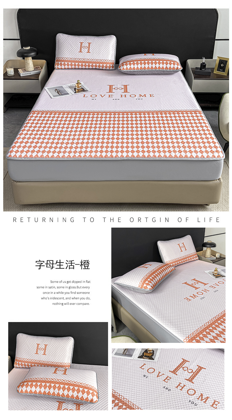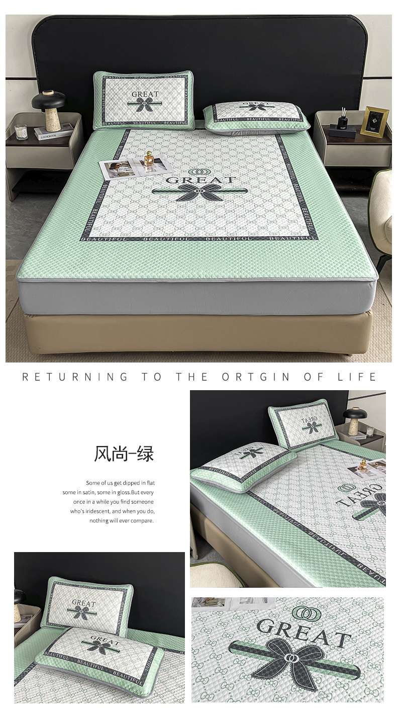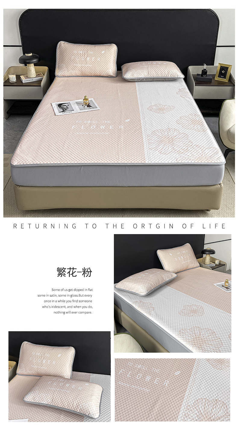慕梵家居 2025新款大版印花冰豆豆凉席席子床笠款三件套 繁花-粉
