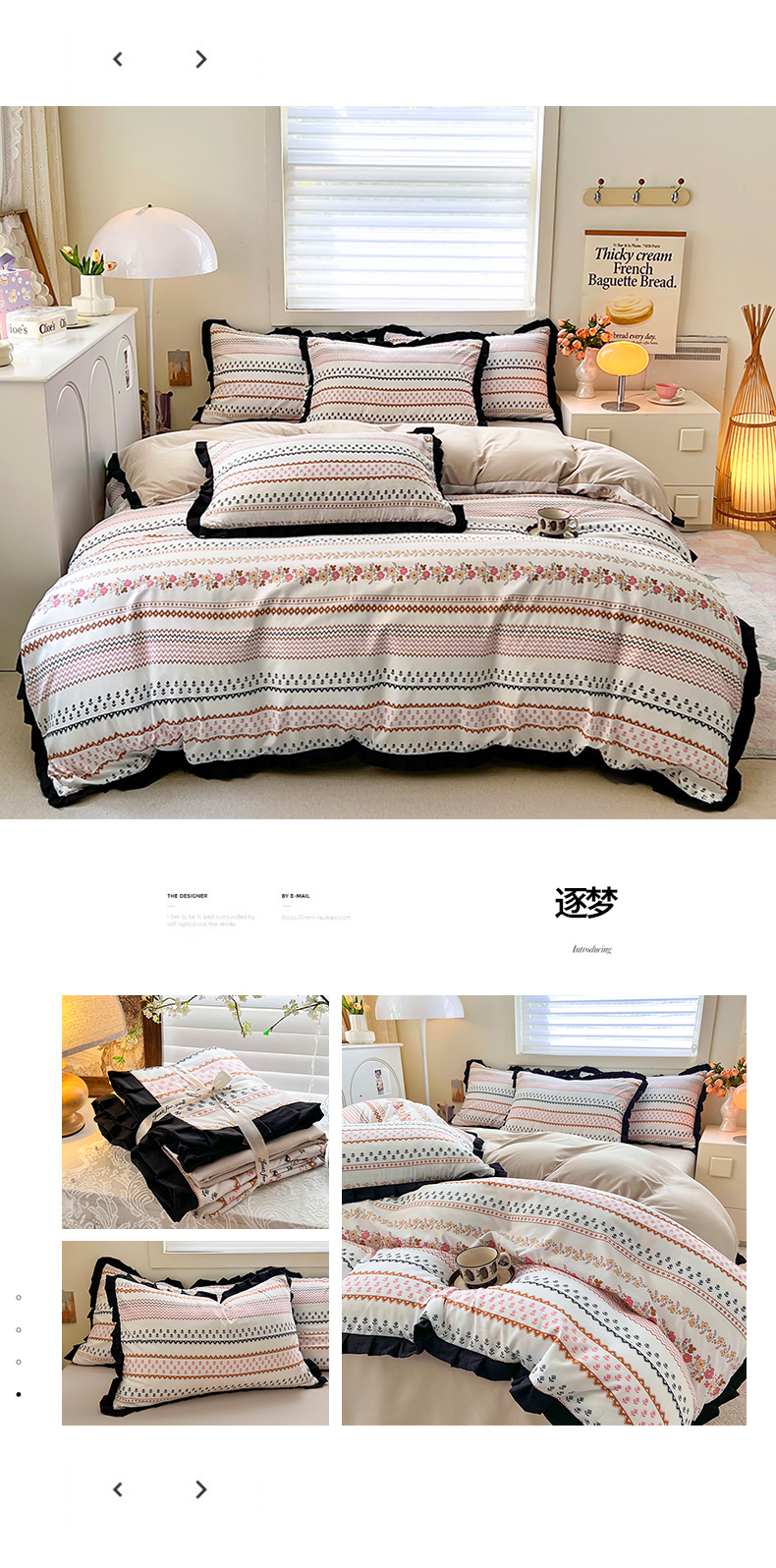 当前位置: 91家纺网 > 商品网购 > 床品套件 > 四件套 > 水洗棉四件套 > 曼璐家纺 2025新款有氧水洗棉赫本风法式黑色花边四件套 逐梦