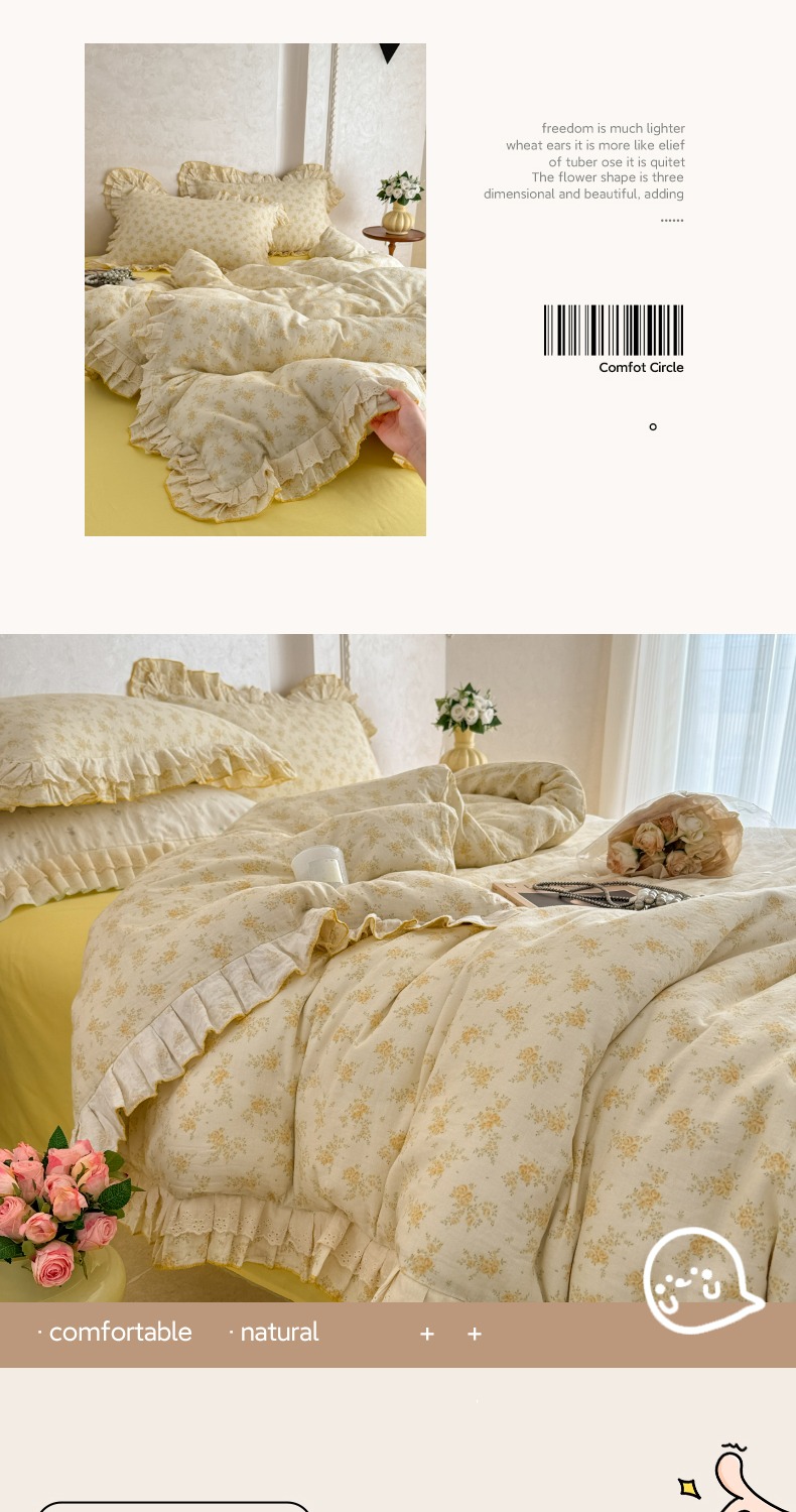 (总)简宜家居 2023新款纯棉全棉斜纹小清新宽边四件套,初遇见,繁花咖,花忆粉,青稚,倾心紫,素雅灰,东篱,锦簇,烂漫,浅牧