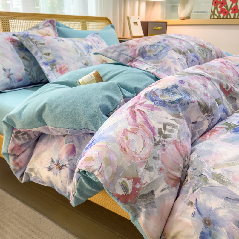 (总)鸿森林 2025新款全棉纯棉磨毛印花四件套,德芙-粉,花吟-黄,浪漫花舞-兰,露西-灰,律动-粉,落樱-粉,曼城-蓝,莫奈-灰,莫奈-咖,沙慕-蓝