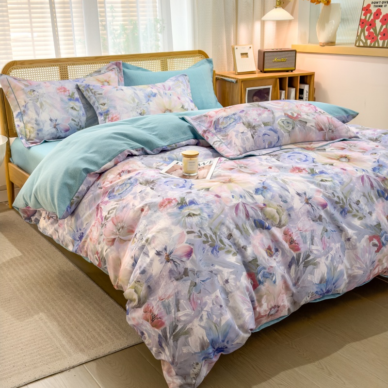 (总)鸿森林 2025新款全棉纯棉磨毛印花四件套,德芙-粉,花吟-黄,浪漫花舞-兰,露西-灰,律动-粉,落樱-粉,曼城-蓝,莫奈-灰,莫奈-咖,沙慕-蓝