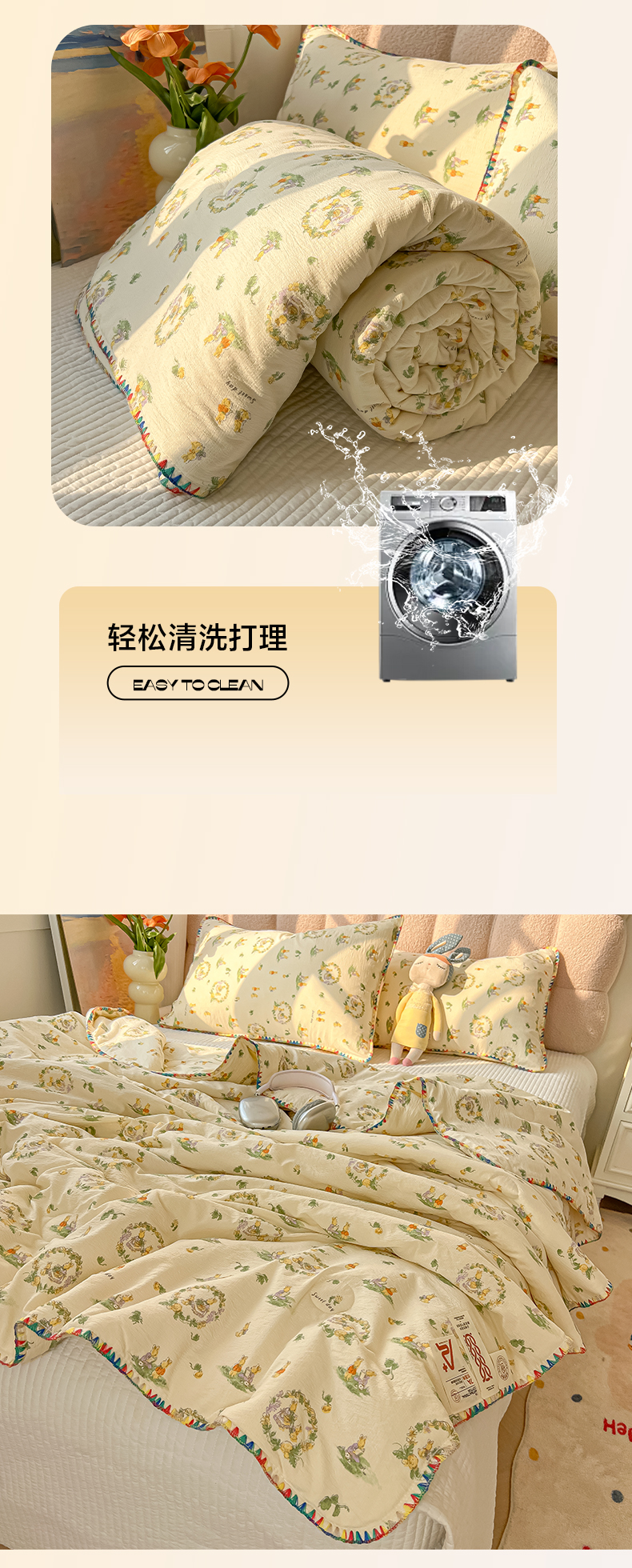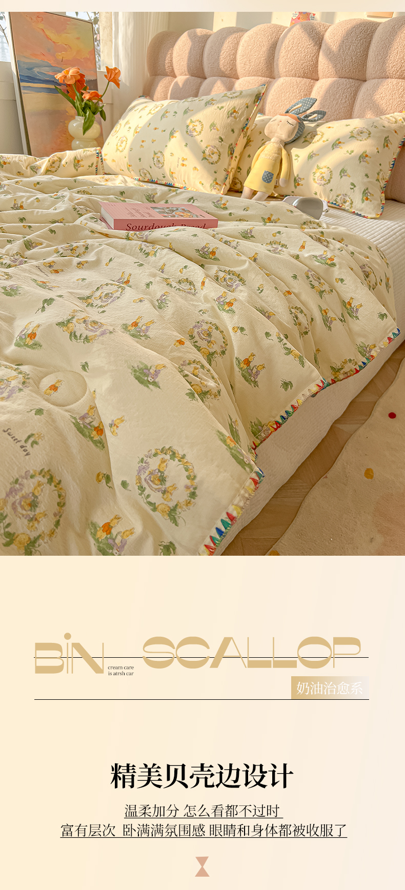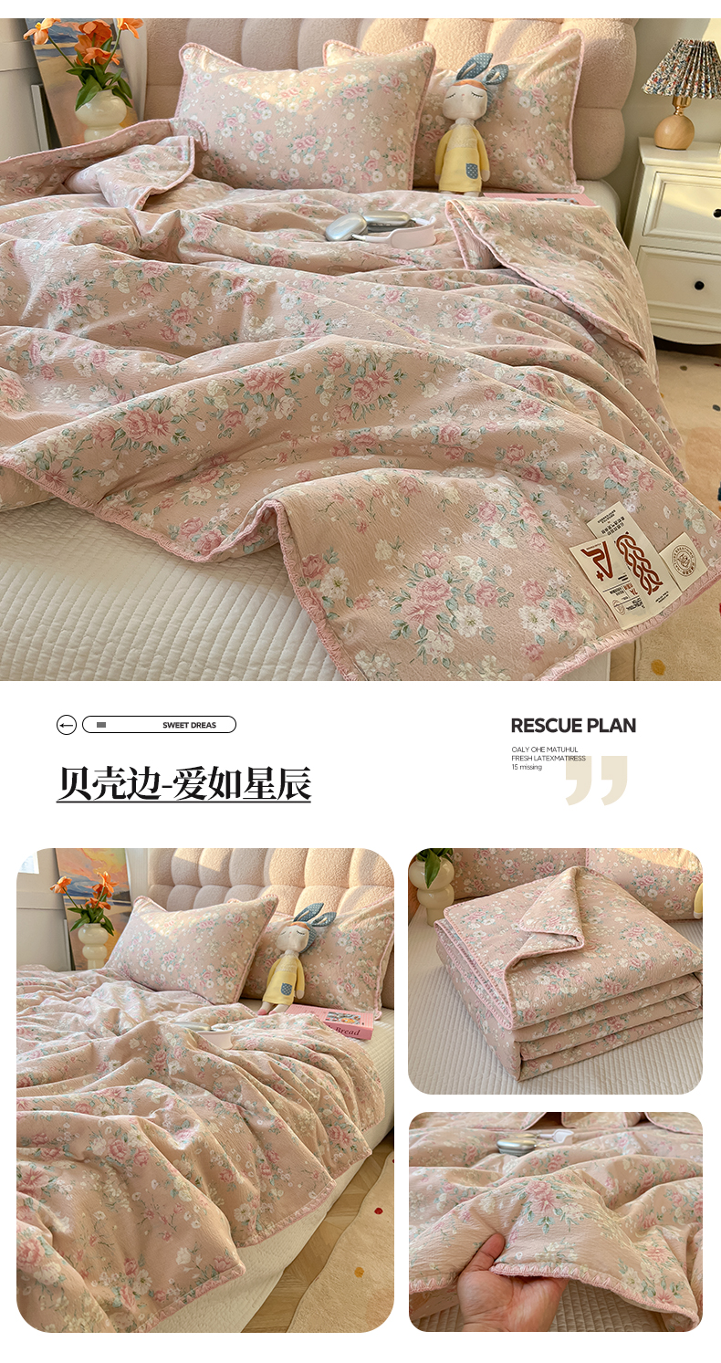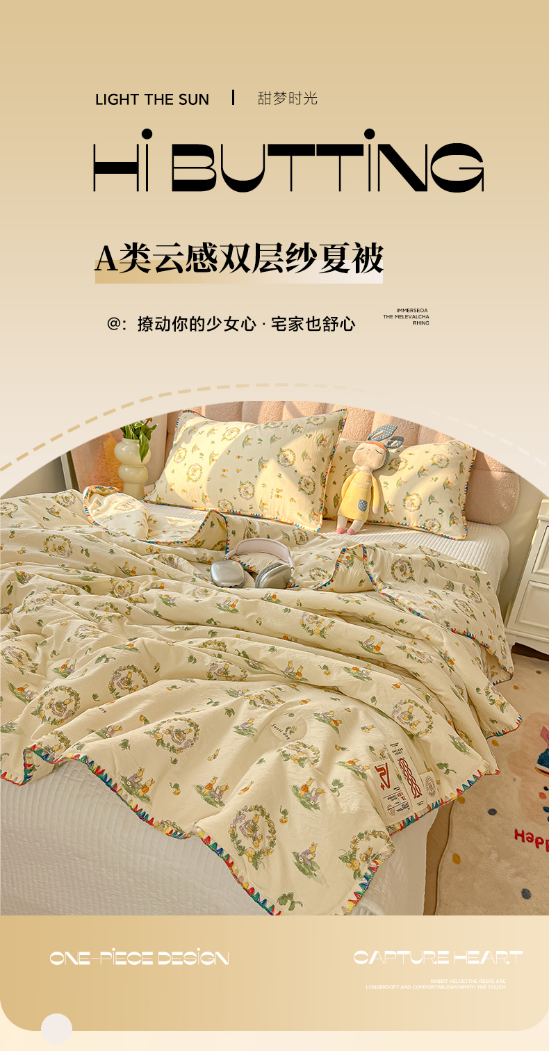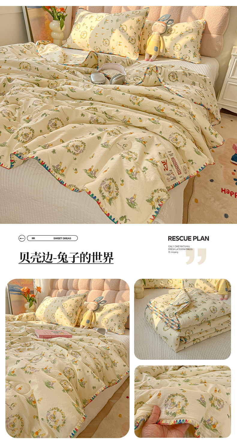 商品名称:韩巢家纺 2025夏季新款A类云感双层纱花边款夏被夏凉被空调被薄被子 贝壳边-兔子的世界