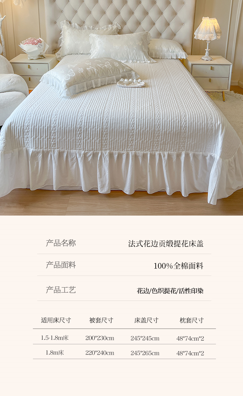 当前位置: 91家纺网 > 商品网购 > 床品套件 > 三件套 > 瑞宝 2025新款法式花边贡缎提花床盖三件套-蝶与梦 奶油白