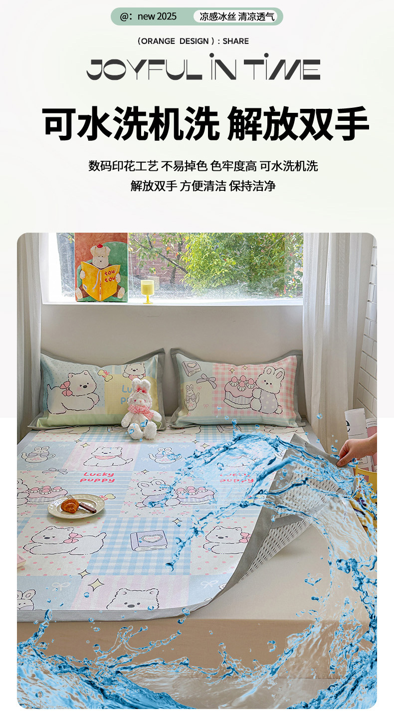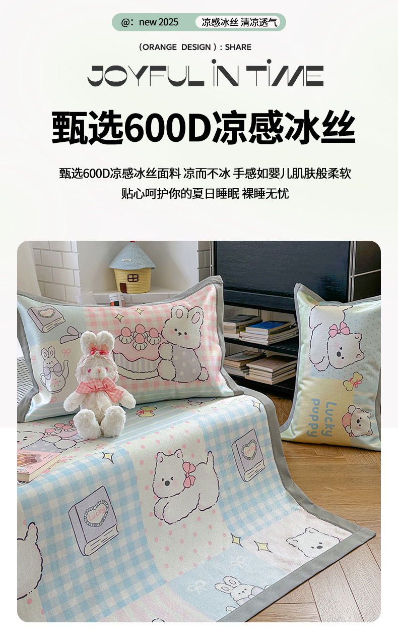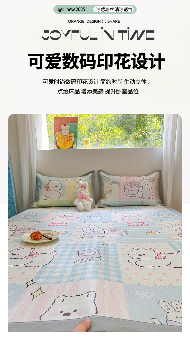 沐慕 2025新款时尚数码印花600D冰丝凉席系列 冰丝-甜心宝贝