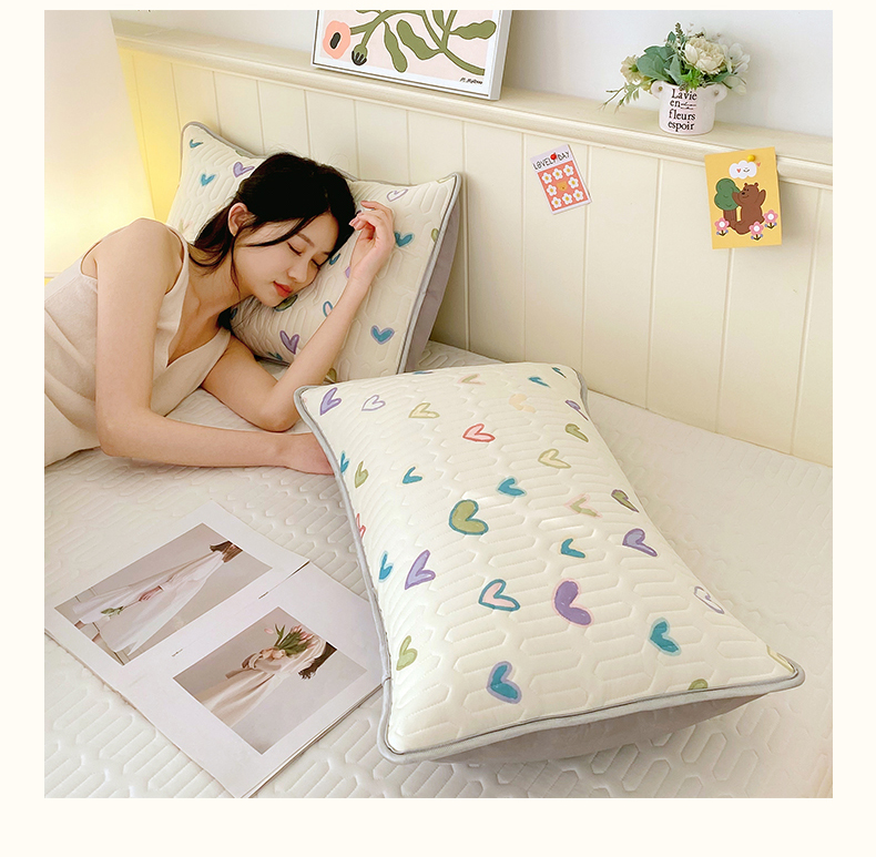 芯宜佳 2025新款A类凉感丝乳胶单人枕套 梦幻爱心