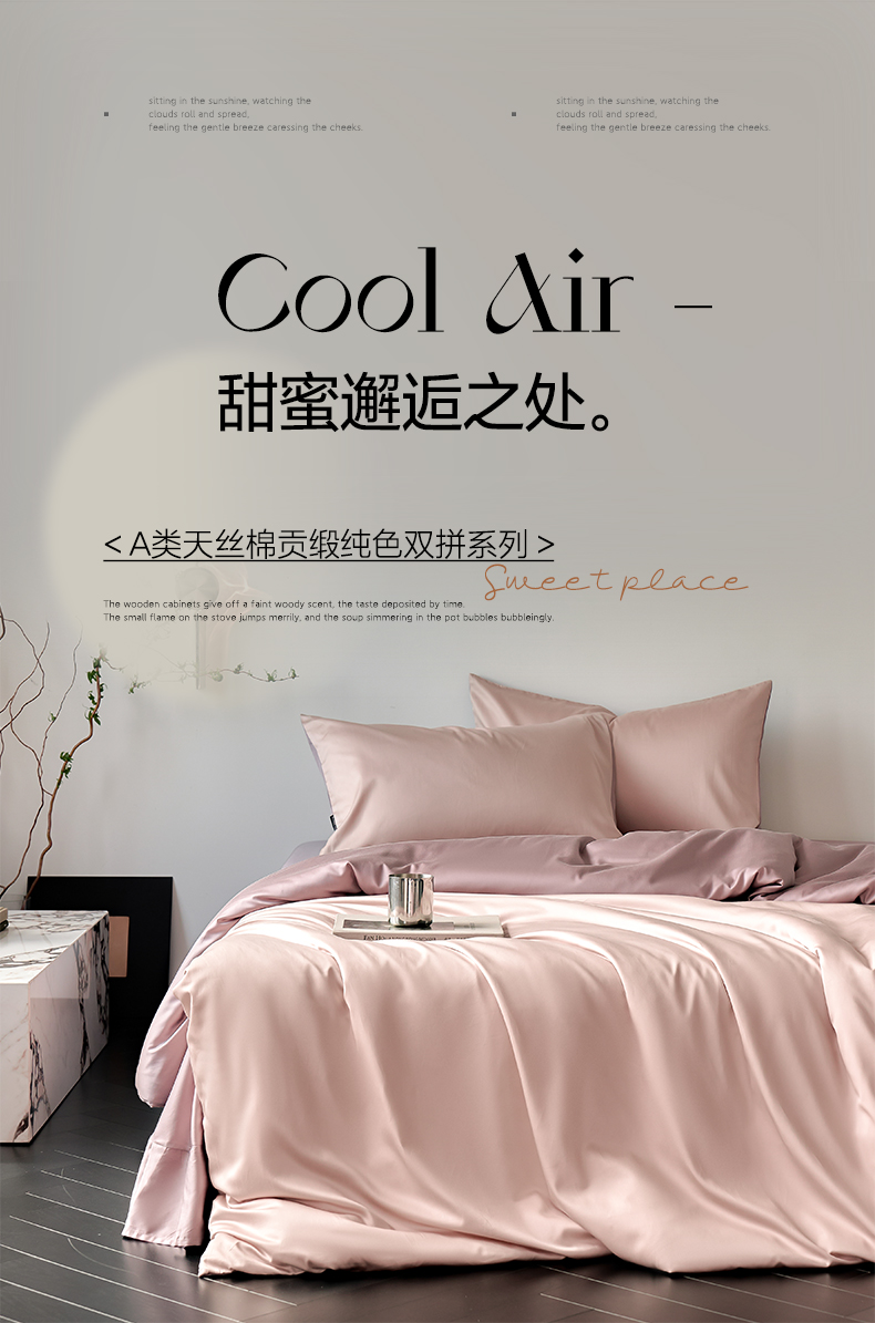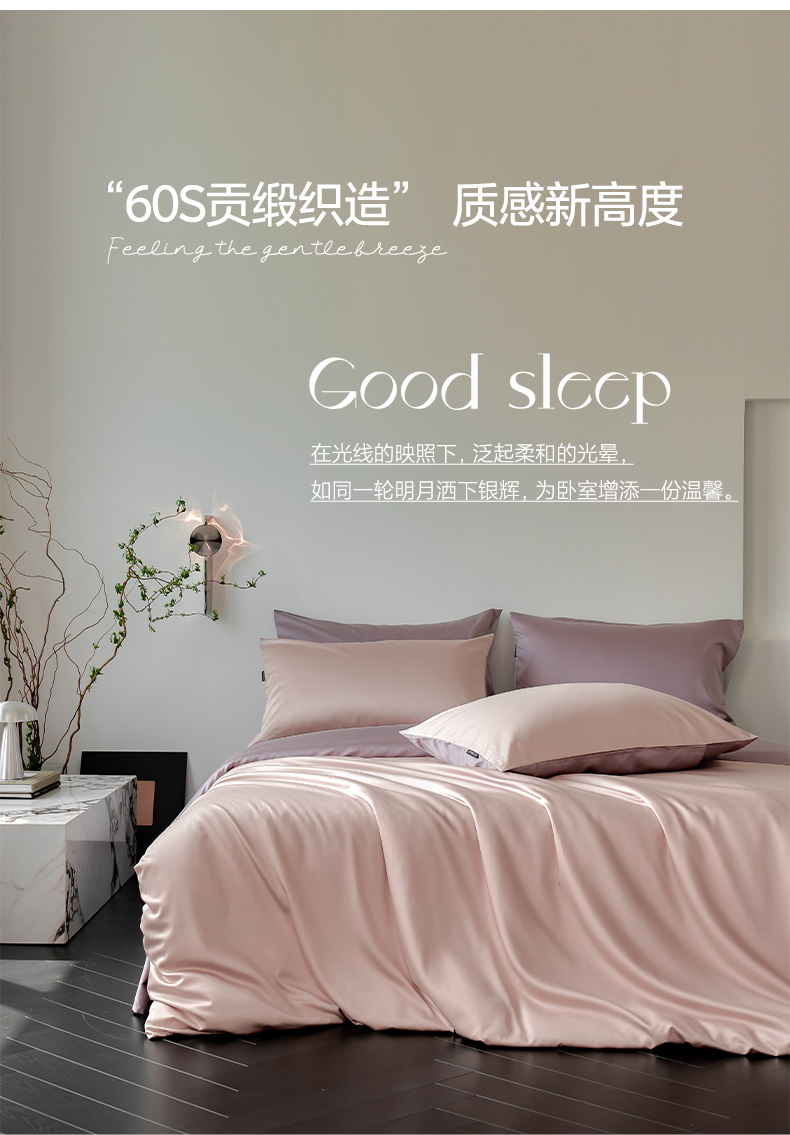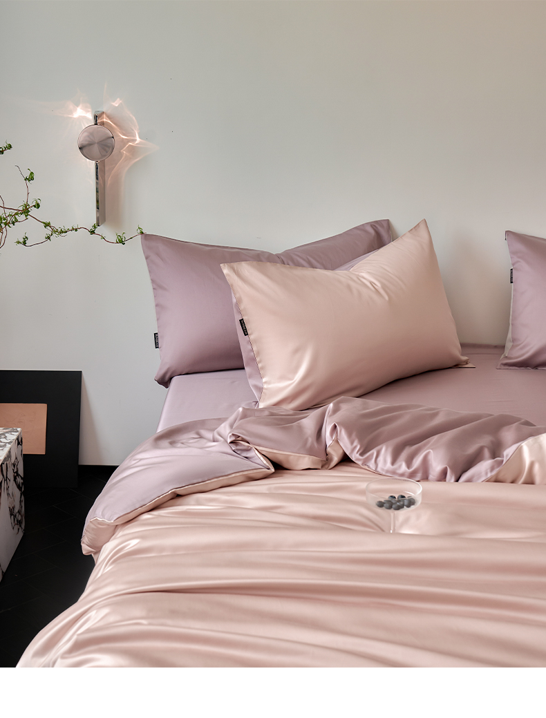 当前位置: 91家纺网 > 商品网购 > 床品套件 > 四件套 > 长绒棉四件套 > 秀色家纺 2025夏季新款A类60s天丝棉贡缎四件套-Cool Air系列(实拍风) Air天丝绵-桃灰粉+迷雾紫