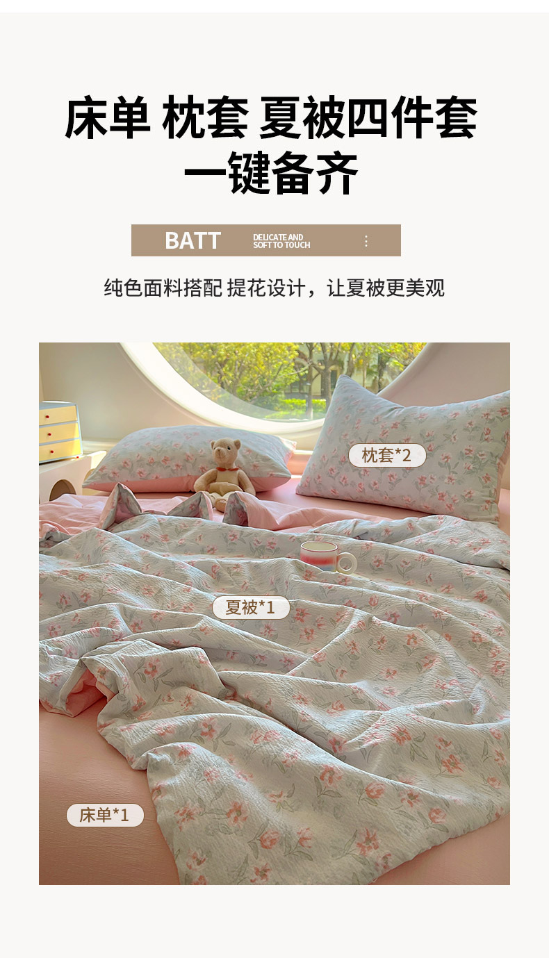 1.5床夏被四件套【夏被200*230cm*1条+床单240*245cm*1条+枕套48*74cm*2只】