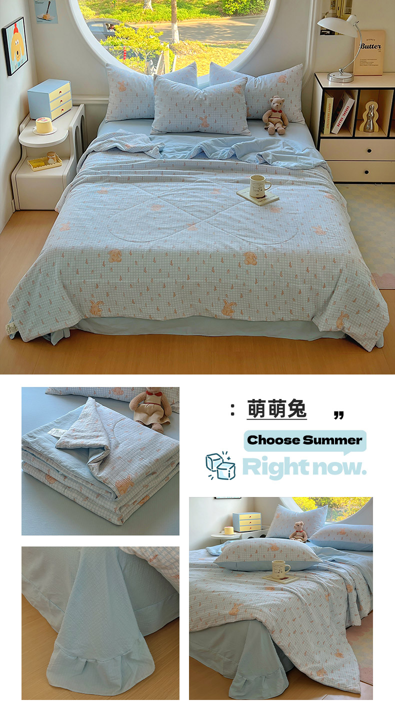 商品名称:金梦拉家纺 2025新款A类提花纱布双层纱夏被四件套 夏被-萌萌兔