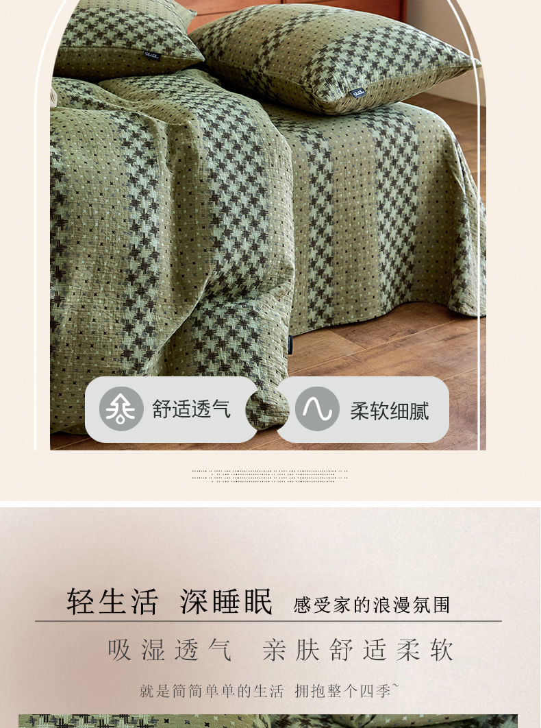 商品名称:云雀 2025新款A类全棉色织双层纱单床单 格林绿