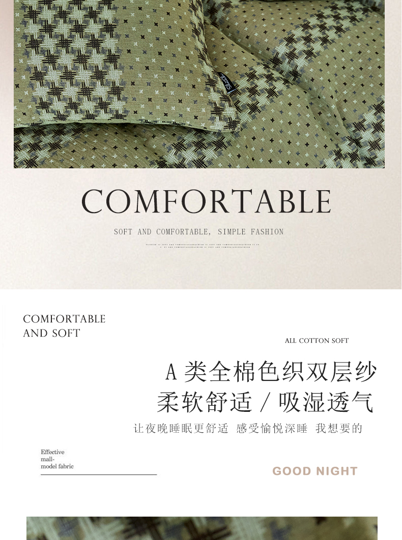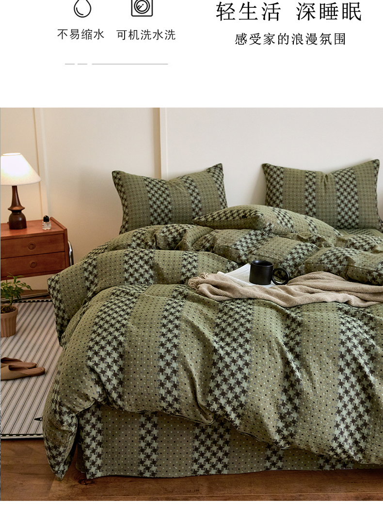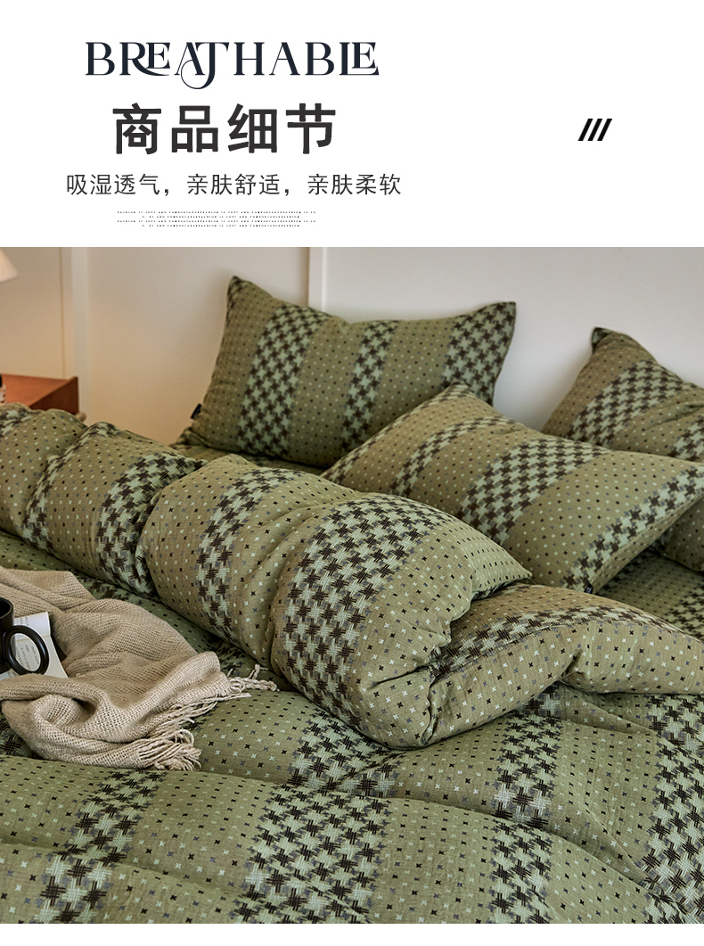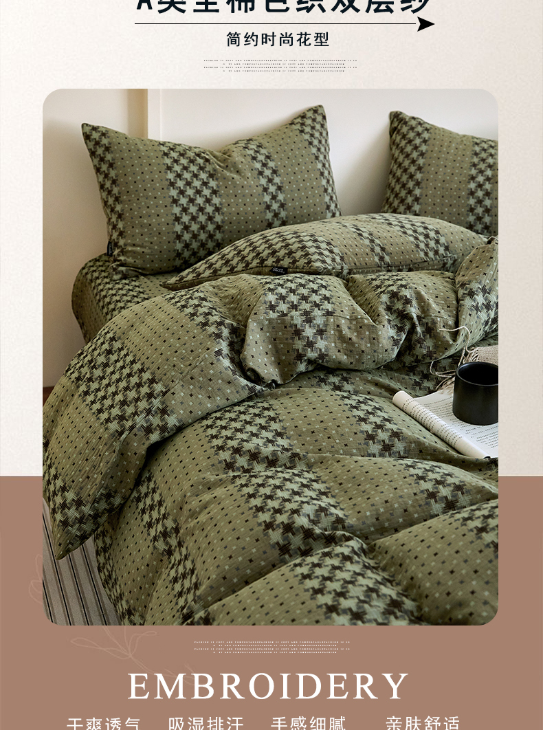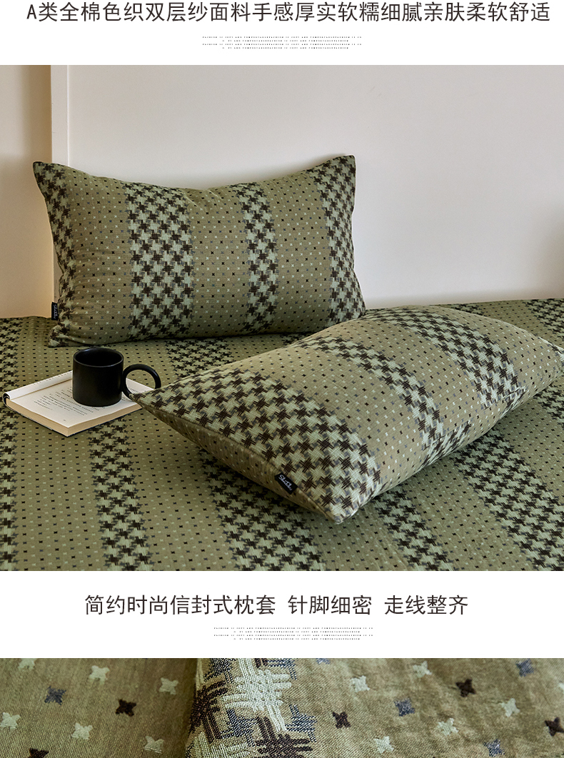 (总)云雀 2025新款A类全棉色织双层纱四件套,格林-豆纱,格林-咖色,格林-绿,格林-浅灰,格林-深灰,格林-烟红,格林-烟灰