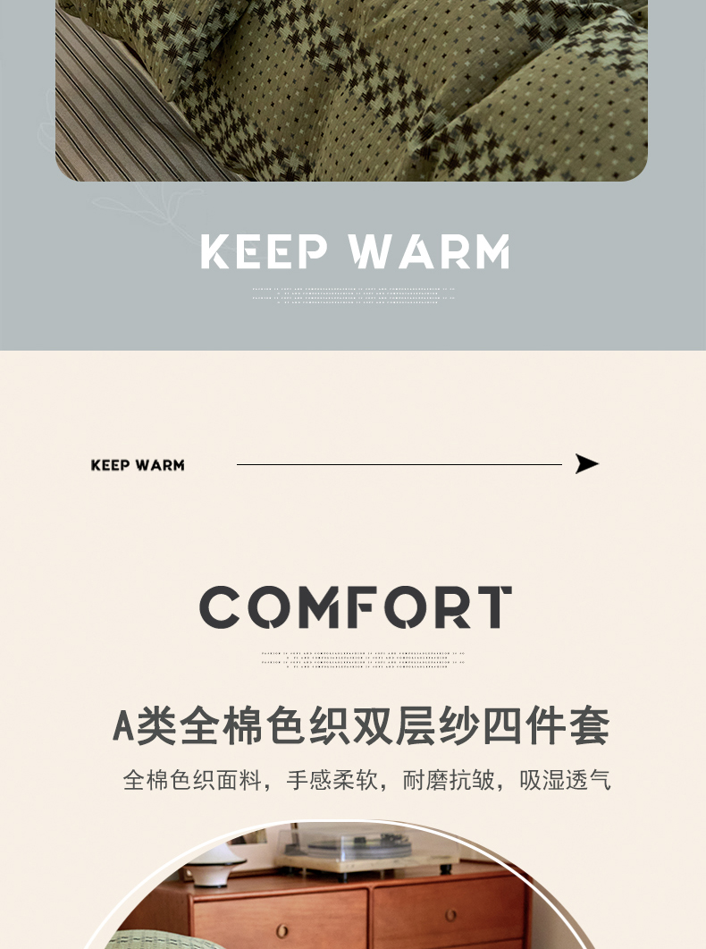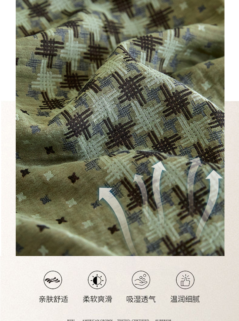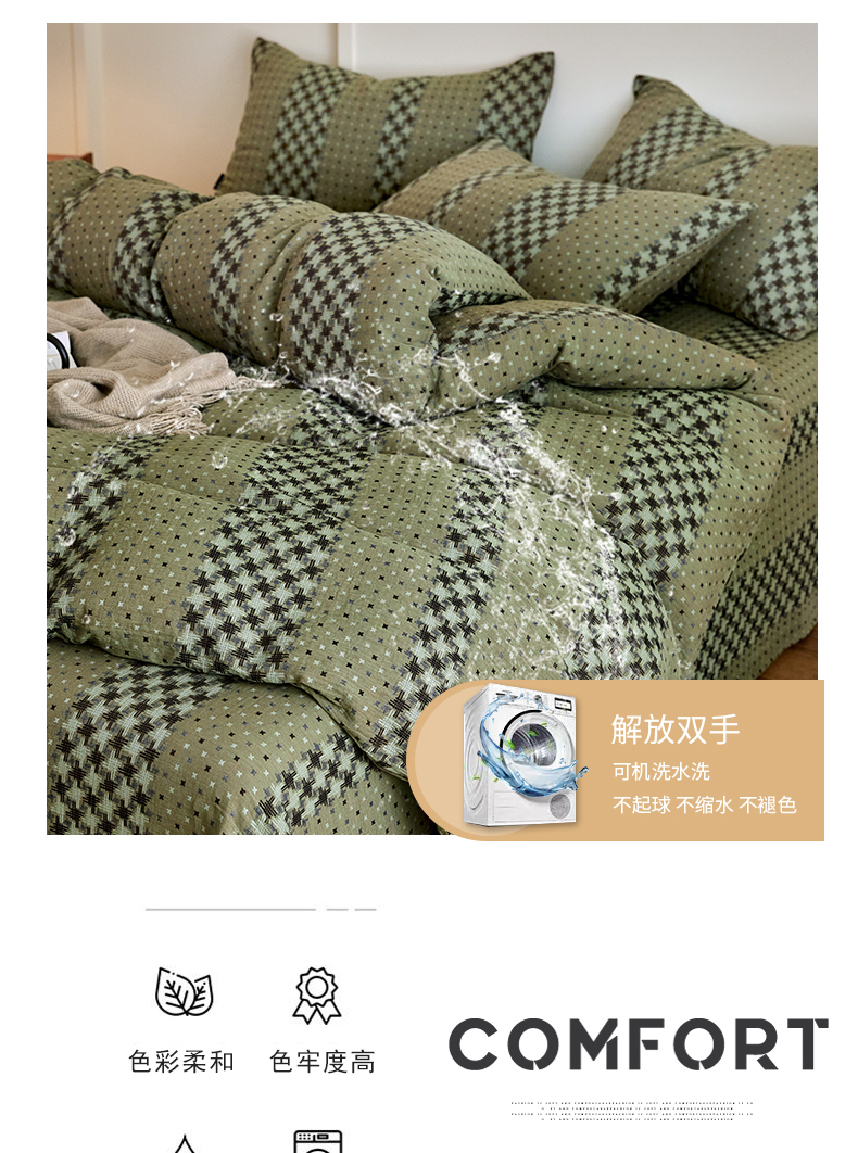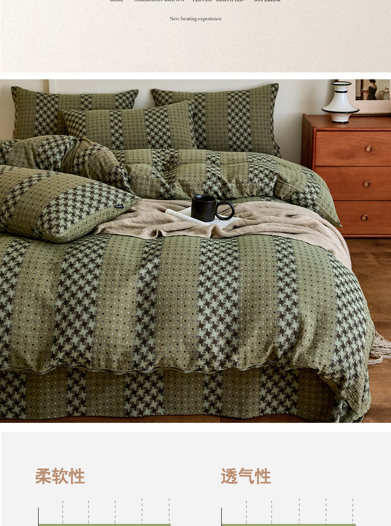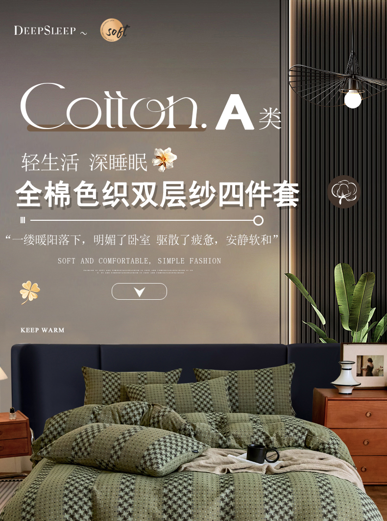 (总)云雀 2025新款A类全棉色织双层纱四件套,格林-豆纱,格林-咖色,格林-绿,格林-浅灰,格林-深灰,格林-烟红,格林-烟灰