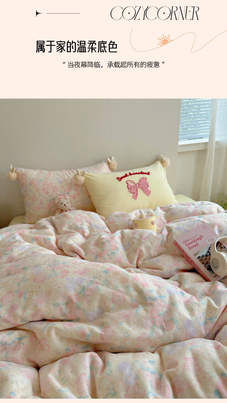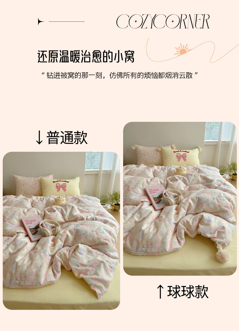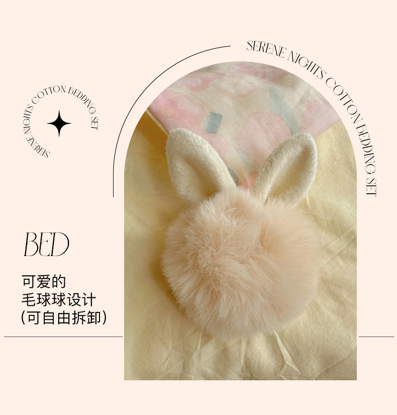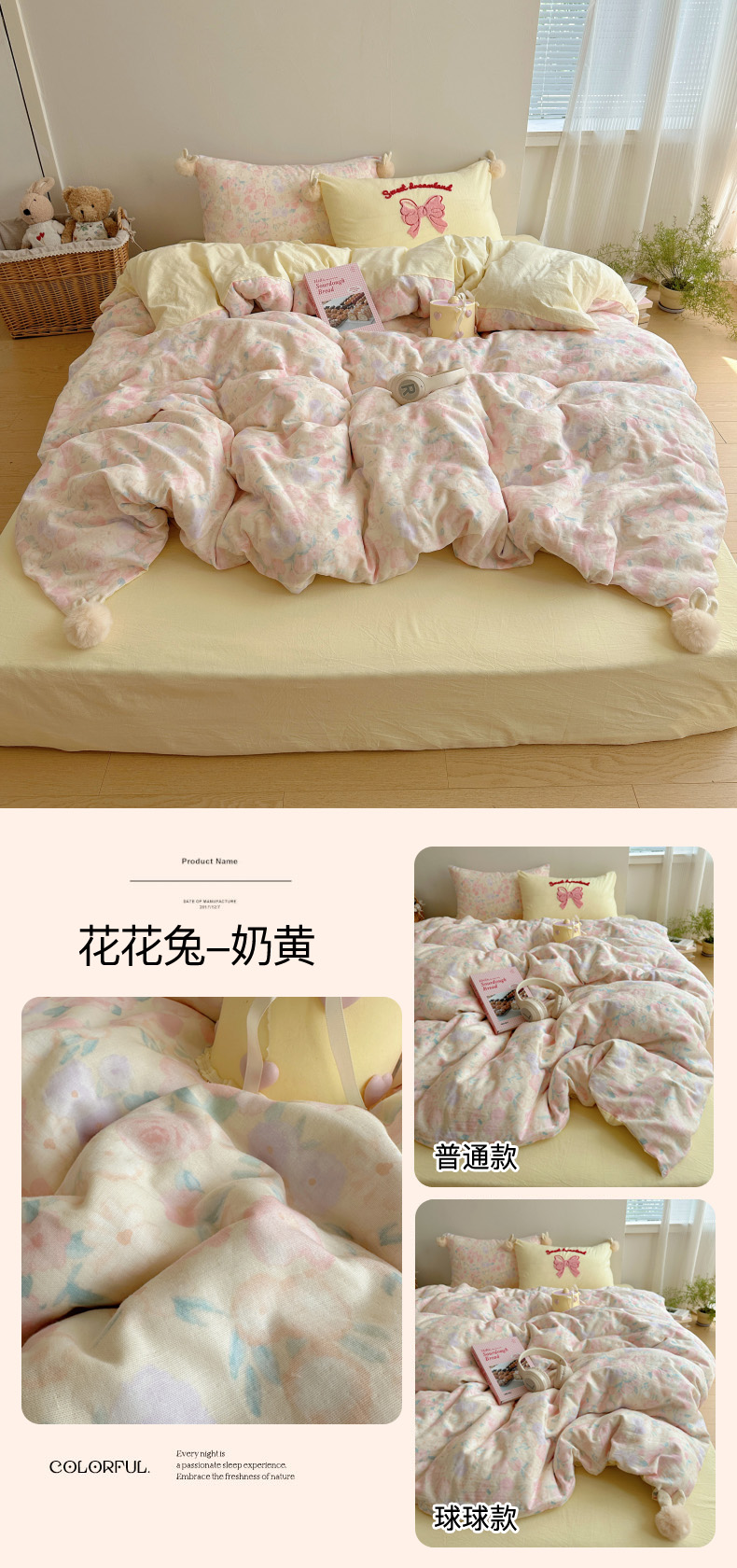 当前位置: 91家纺网 > 商品网购 > 床品套件 > 四件套 > 全棉普通四件套 > 丽涵家纺 2025新款全棉纯棉双层纱色织水洗棉毛巾绣四件套 球球款花花兔-奶黄