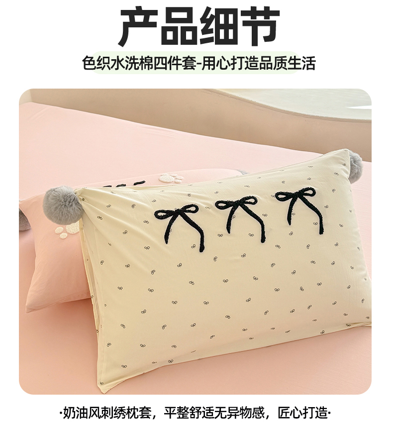 当前位置: 91家纺网 > 商品网购 > 床品套件 > 四件套 > 水洗棉四件套 > 多品家纺 2025新款ins奶油风刺绣枕套毛球款水洗棉四件套 梦幻甜心