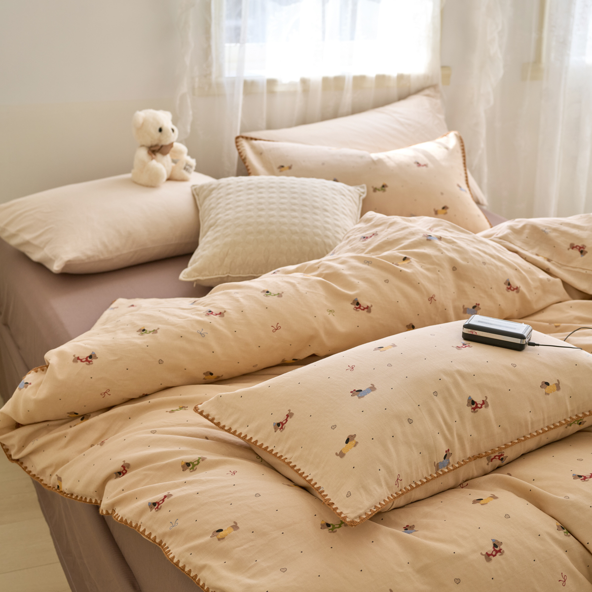 (总)洋铭区(原狠狠爱) 2026新款春季全棉彩边双层纱四件套,爱心宝莉,波斯小懒狗,繁花兔兔,格格小熊,海蓝小木马,红格小马,红枣小兔,花朵兔兔,焦糖小熊,兰花香,绿芽小马,萌宠小分队,奶茶蝴蝶结,奶糕熊熊,汽车派对,桃桃粉花,甜果小象,图图小狮子,幸运小可爱,熊猫嘟嘟,遇见粉花,月光宝宝