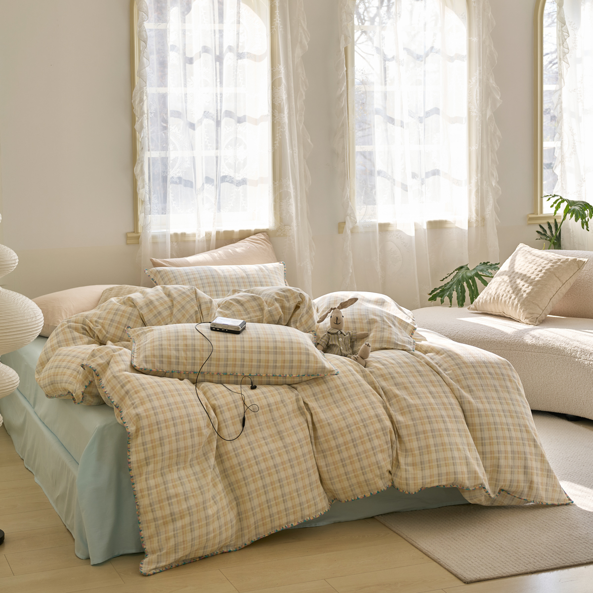 (总)洋铭区(原狠狠爱) 2026新款色织水洗棉一字边四件套系列,朵拉粉格,朵拉咖格,朵拉绿格,翡翠绿格,风雅蓝格,枫叶红格,红茶格,山宇灰格,杏仁米格,烟幕黑格,烟幕蓝格,烟幕棕格,组合