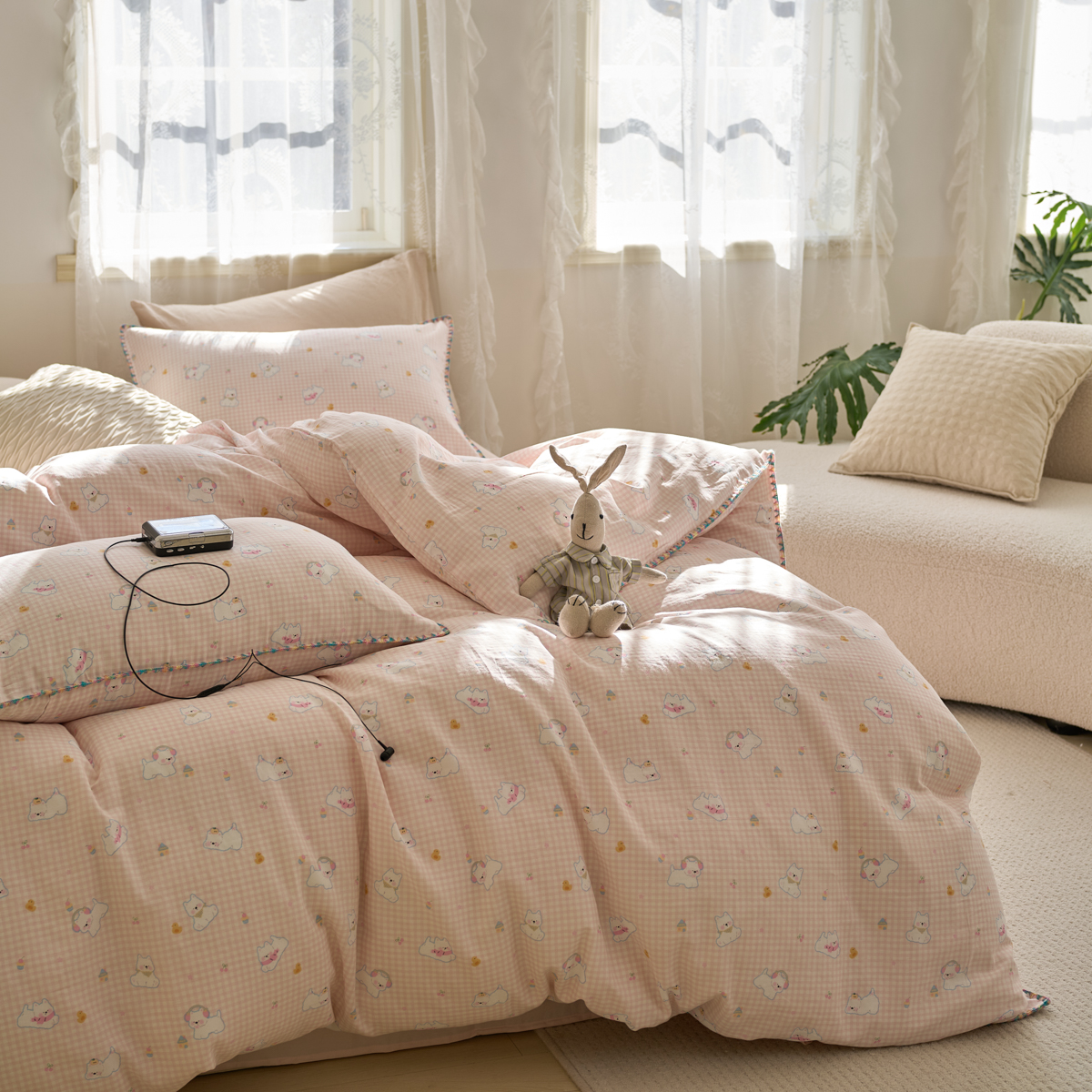 洋铭区(原狠狠爱) 2025新款A类全棉双层纱四件套 粉嘟小象