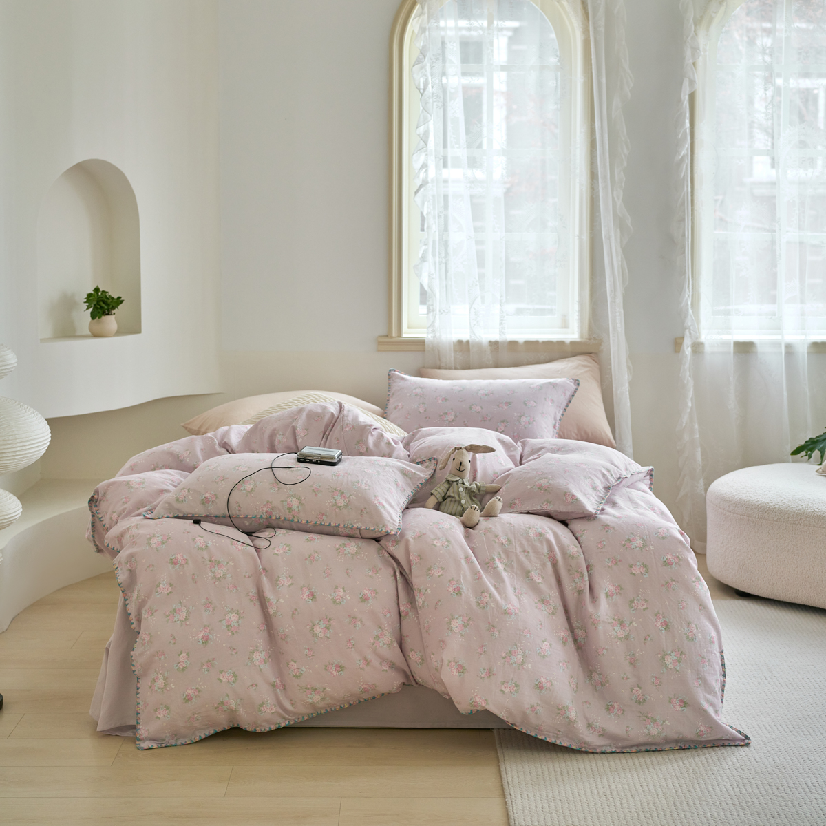 (总)洋铭区 2023新款全棉床盖三件套,微醺白